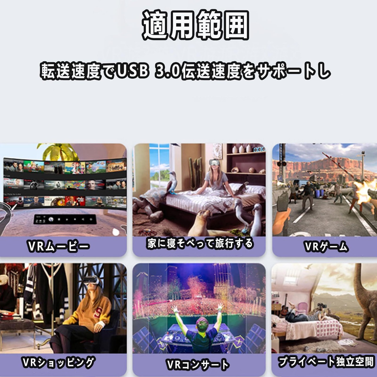【USB 3.0ケーブル】: インのケーブルは、VRをプレイしながら、約5 GPS(コンピュータのパフォーマンスの影響を受ける)の転送速度でUSB 3.0伝送速度をサポートし、クリアでスムーズなゲーム鮮明でスムーズな映像を実現