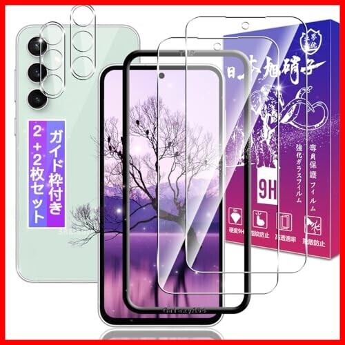 【ガイド枠付き 指紋認証対応】 対応 Galaxy S23 FE ガラスフィルム 2枚 + レンズフィルム 2枚 6.4インチ 対応 ギャラクシー S23 FE フィルム 保護フィルム ケース カバー 高透過率 飛散防止 硬度9H 高感度タッチ 気泡防止 耐指紋 撥油性 ラウンドエッジ加工 簡単貼り付け FAMROLLS正規品