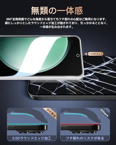 【対応機種】 Galaxy S23 FE 6.4インチ 専用に設計されています。素材に日本製の旭硝子を採用。【年間30万販売パフォーマンス】:FAMROLLSの保護フィルムは30万枚の販売パフォーマンスに達成しました。【メーカー正規品】:実店舗を持つFAMROLLSブランドの保護フィルムは市販上の安価品、不良品とは異なり、高価なフィルムと変わらない高品質な保護フィルムを作り出すメーカーです。