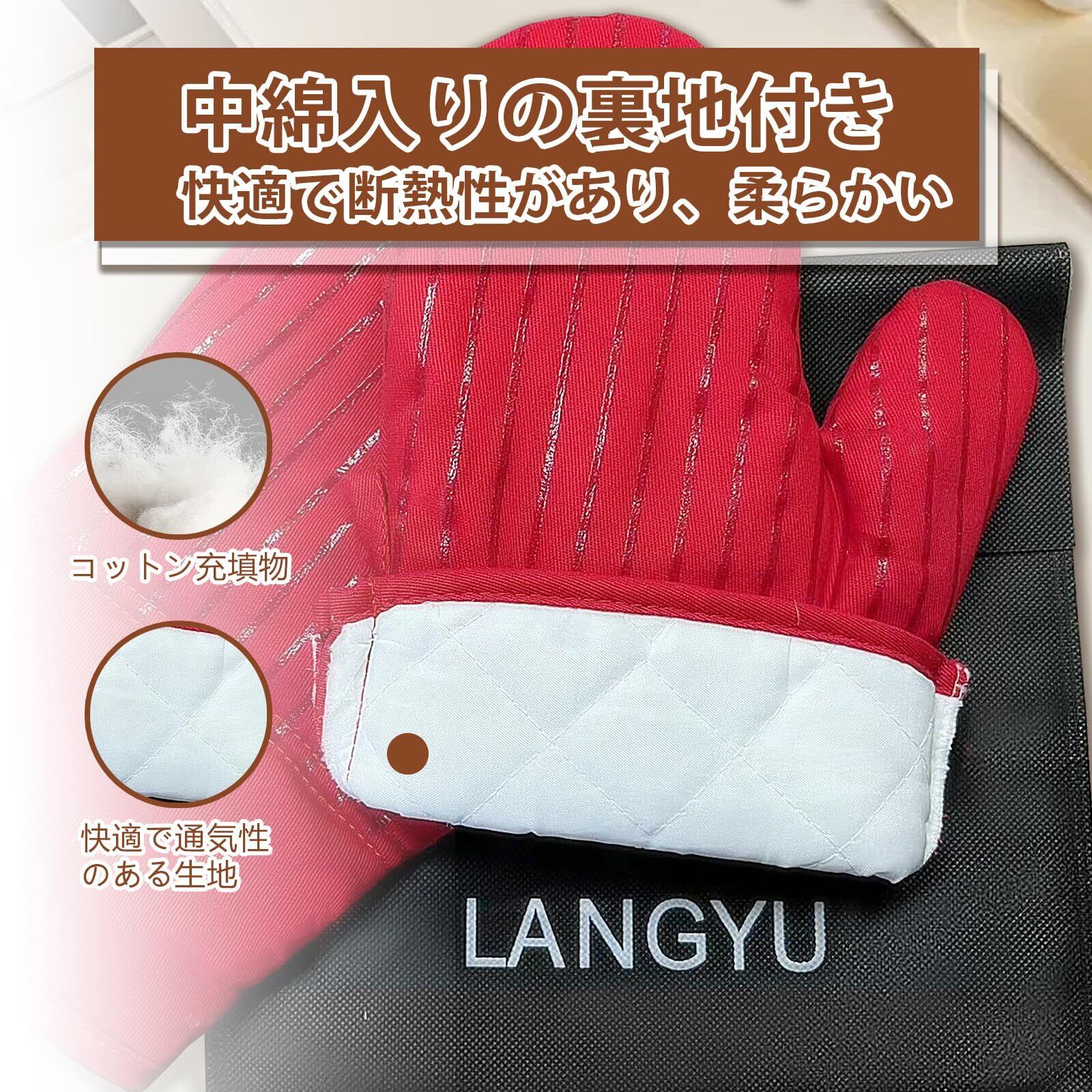 「[LANGYU] 耐熱ミトン」は、最大480℃まで耐えられる高性能なオーブンミトンとして、熱い鍋や皿を安全に取り扱うための必需品です。オーブン料理やグリル料理を楽しむ方に最適で、やけどの心配を軽減します。