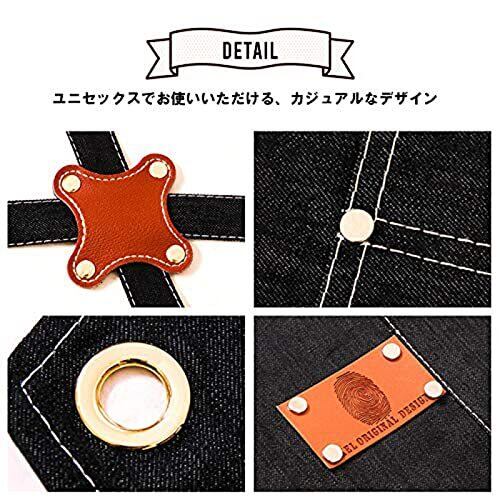 [ロキリフ] エプロン デニム 職人 男女兼用 (作業用 美容師 キャンプ アウトドア ガーデニング カフェ シェフ)(大人:75cm)