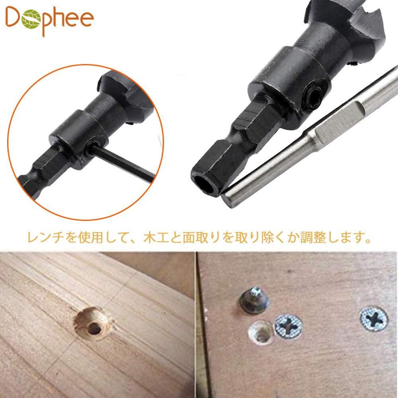 Dophee 皿ドリルビット HSS 面取り 皿取り錐ドリル ビット DIY工具 木工用 六角軸 コンクリートドリルセット #6#10#13#16 4本