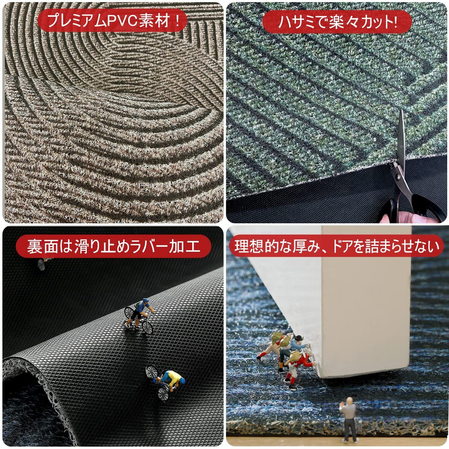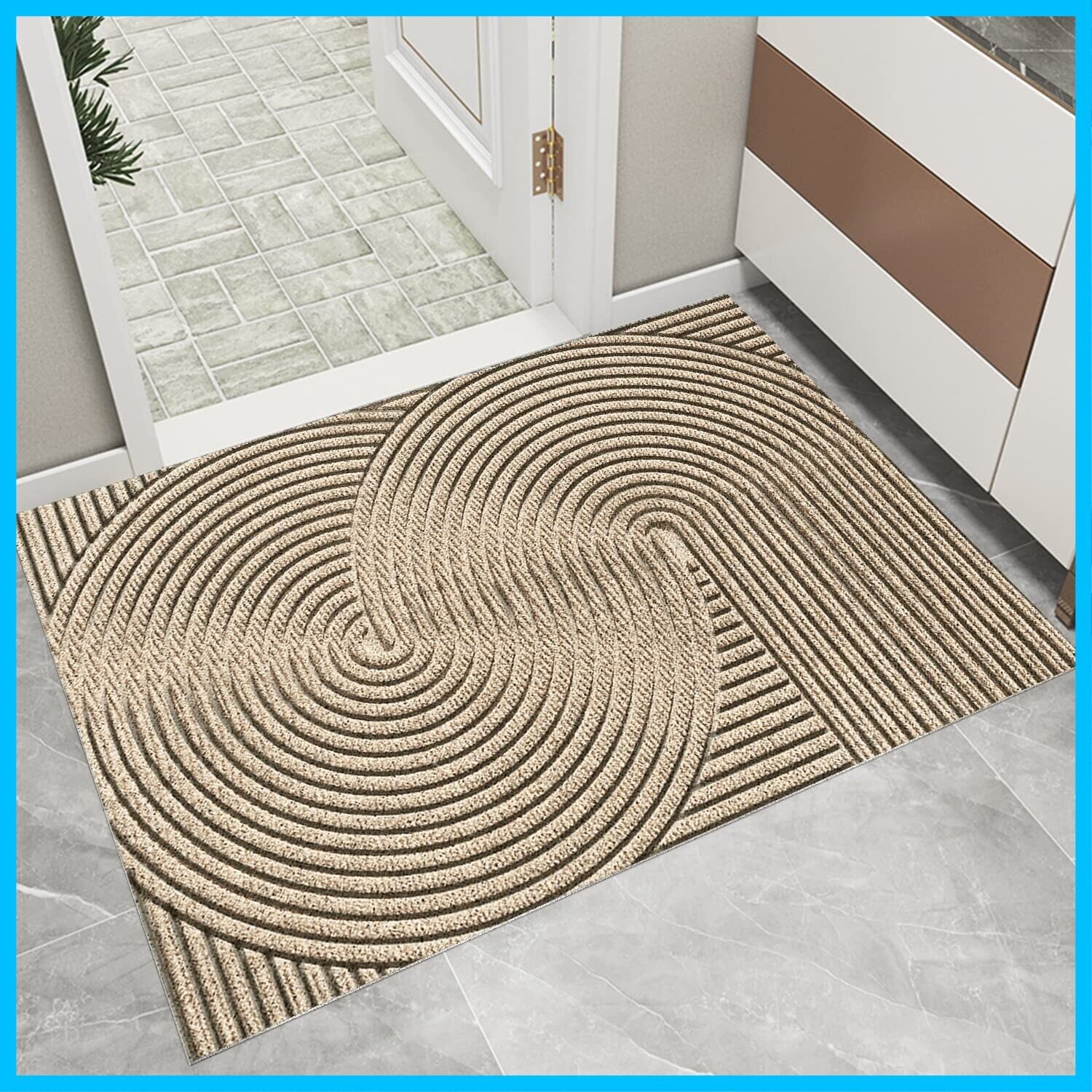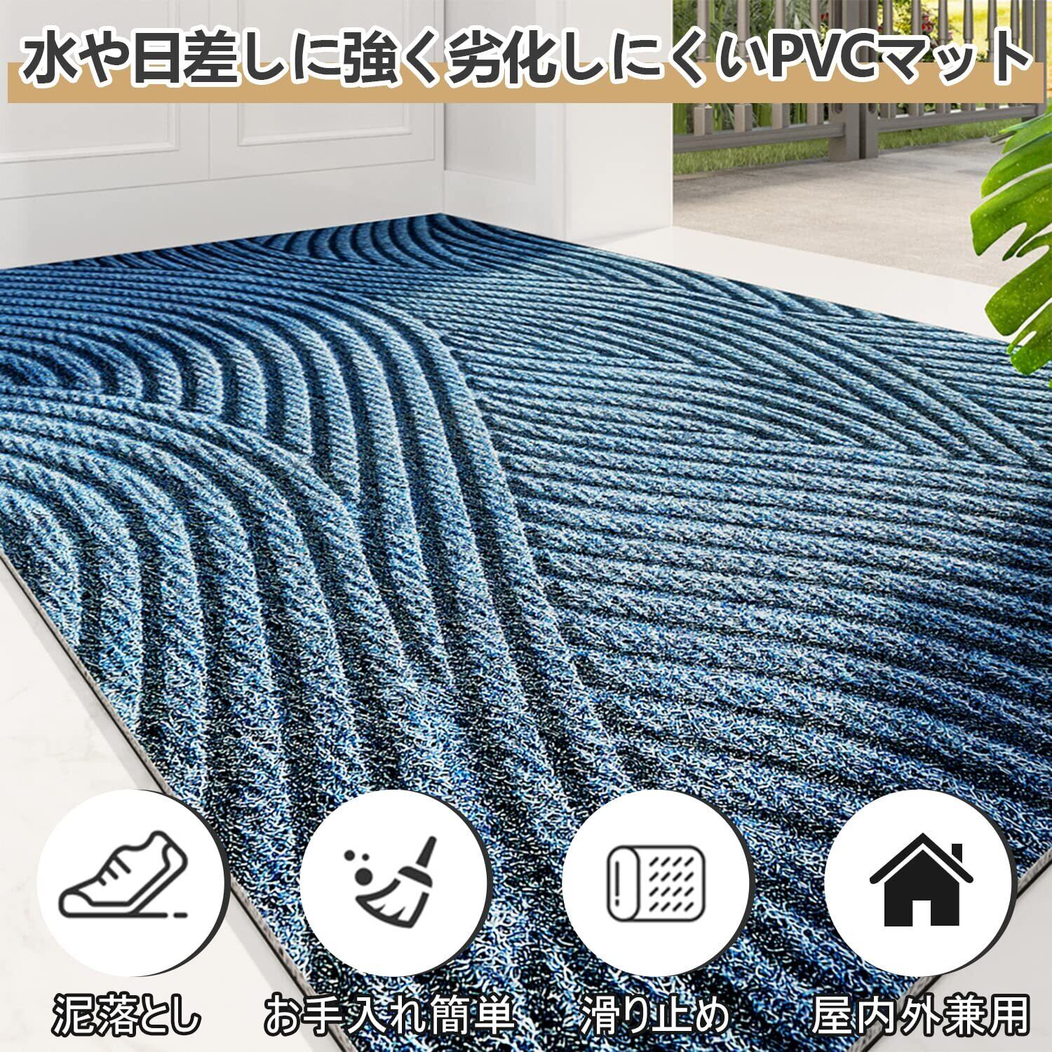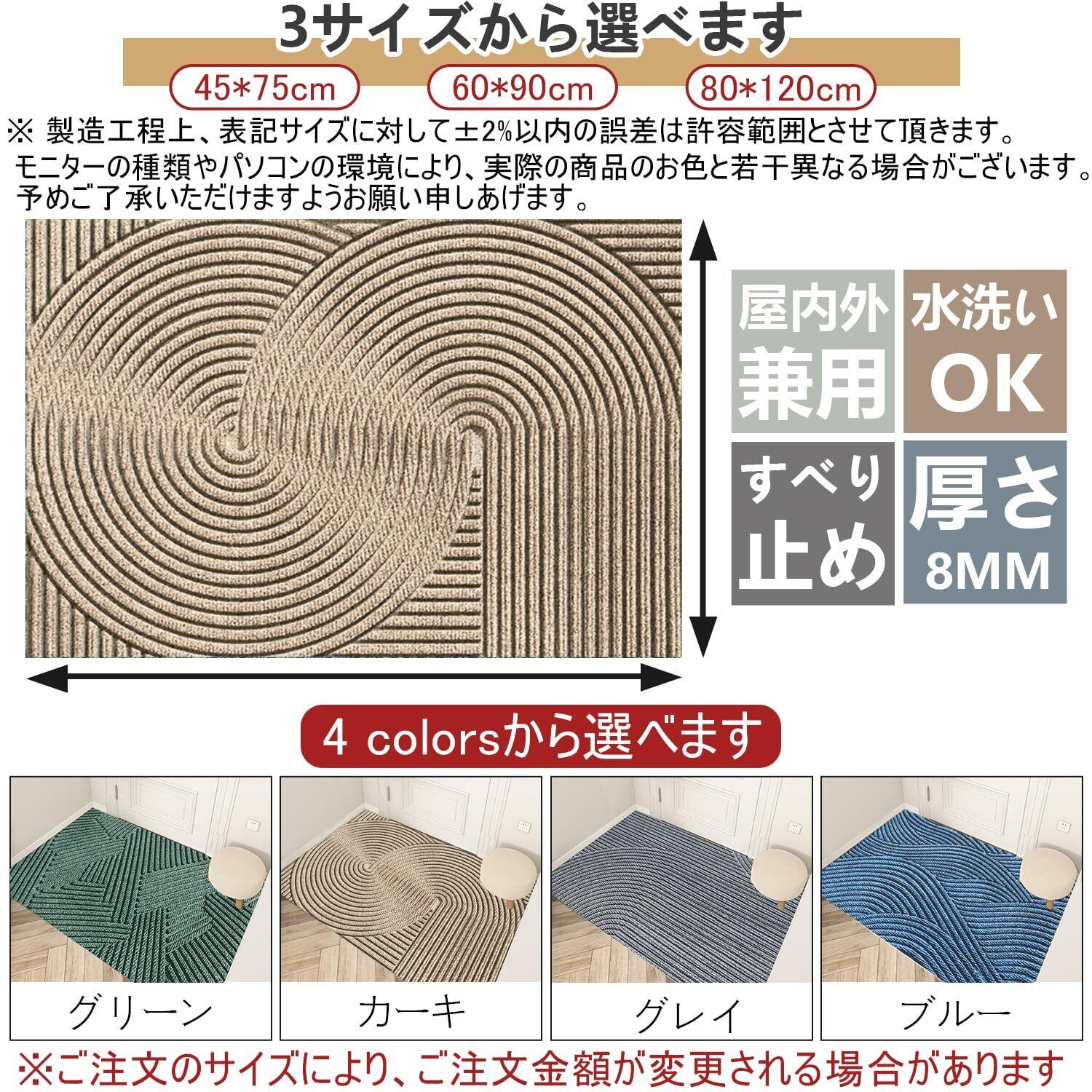 玄関マット 北欧 室内 屋外 泥 砂落とし 水や日差しに強く お手入れ簡単 水洗い pvc 玄関 マット 風水 おしゃれ 玄関外マット 滑り止め付き 足拭きマット 60×90cm カーキ