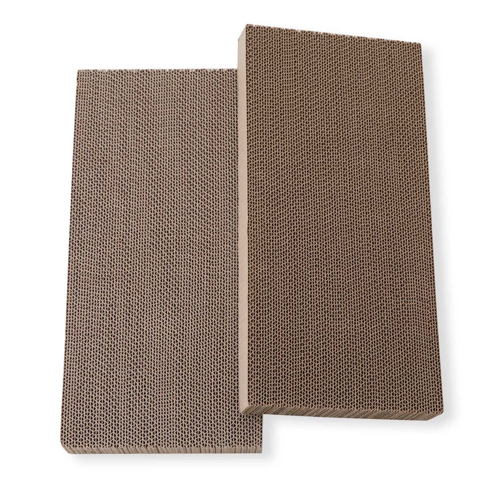 【こだわり抜いた原材料】つめとぎ部分に使用しているダンボールは、原料の100%が紙。 内10%はニュージーランド産原パルプ紙を使用。大切な猫に使用するつめとぎなので、品質にはとことんこだわりました。 ダンボールを貼り合わせる糊は植物由来の糊を使用しています。