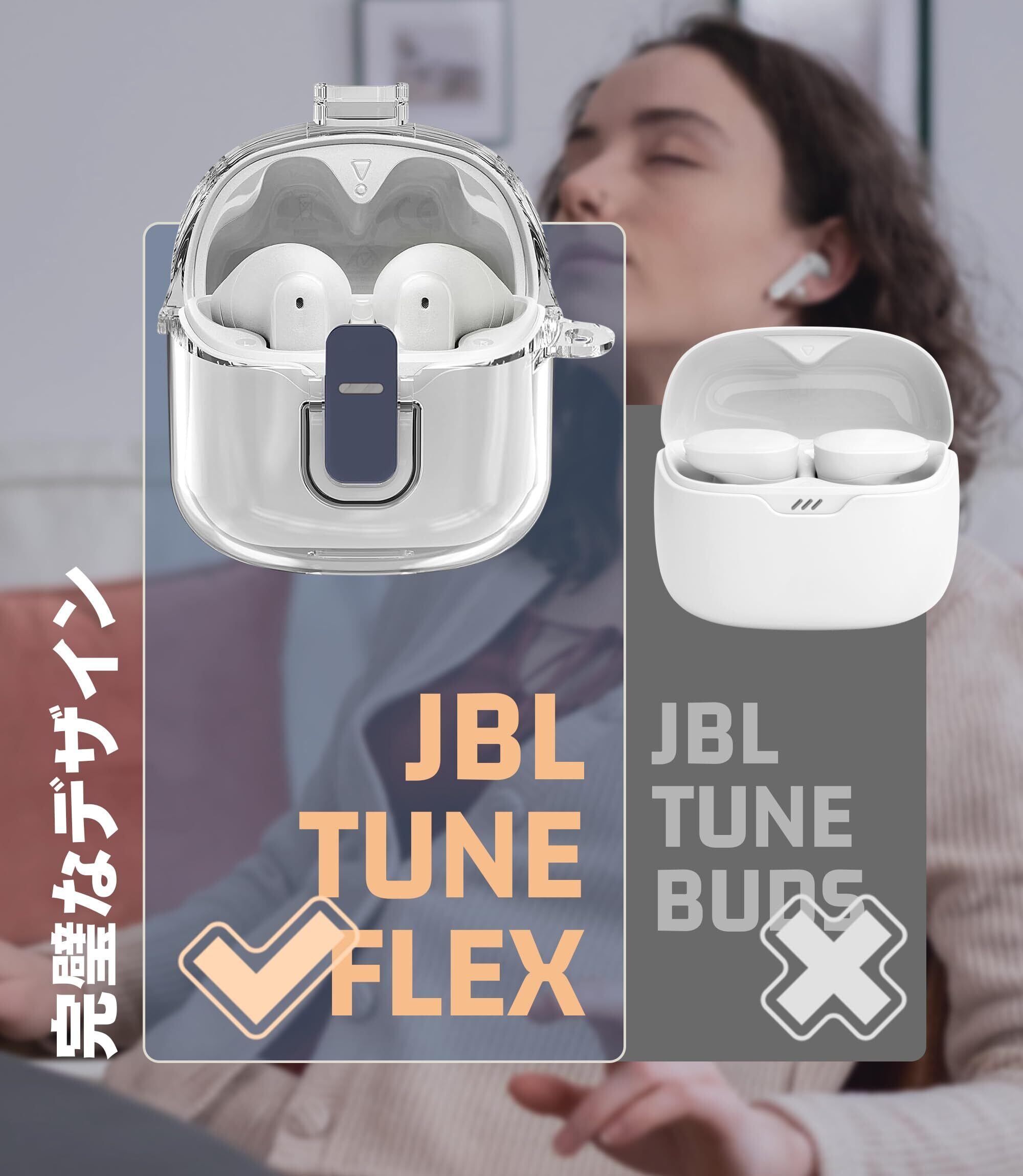 【対応機種】JBL Tune Flex ghost。クリアケースを取付けば外すことは容易ではないとご注意ください。