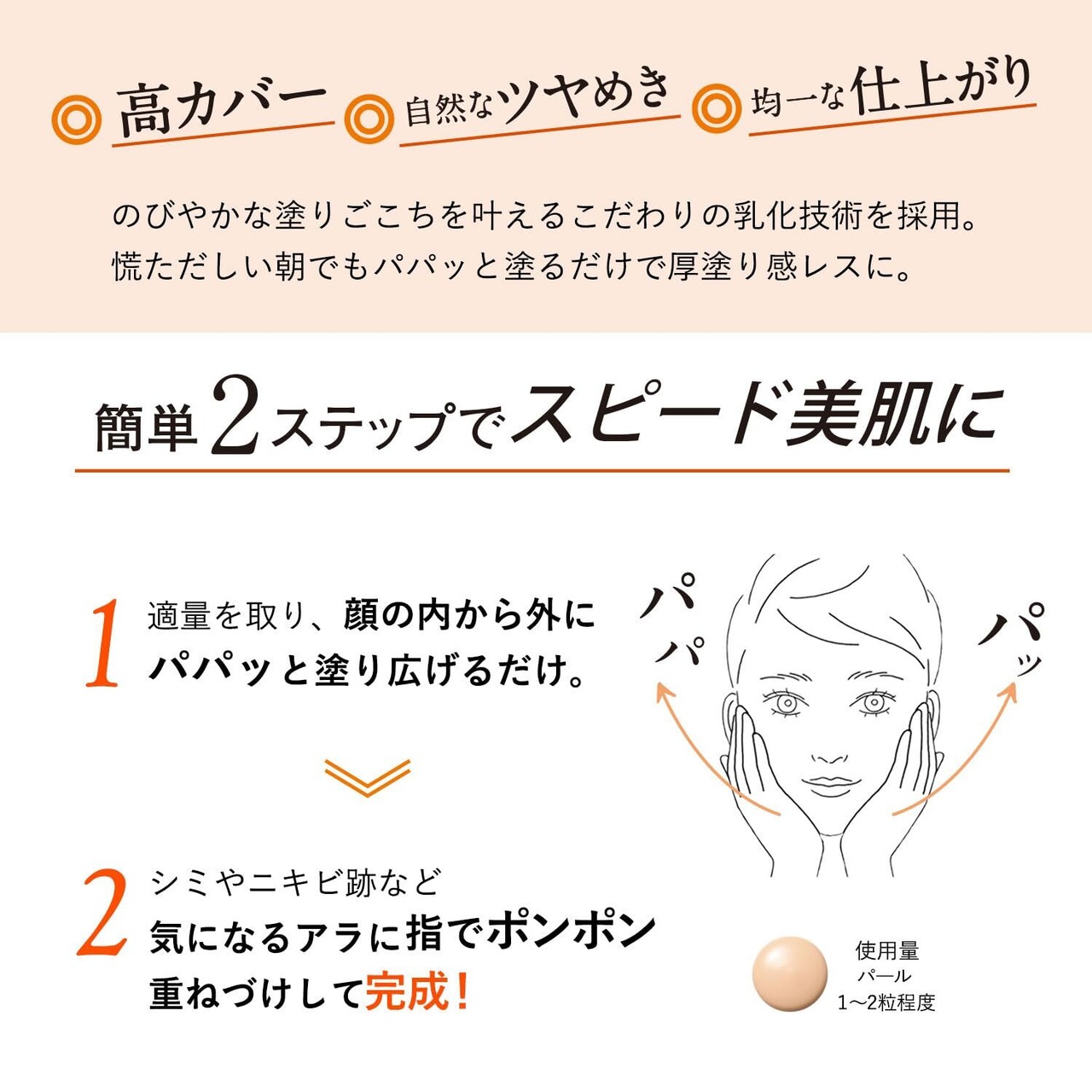 厚みのあるテクスチャーが均一にのび広がり、しっかりカバーしながらも自然な仕上がり
