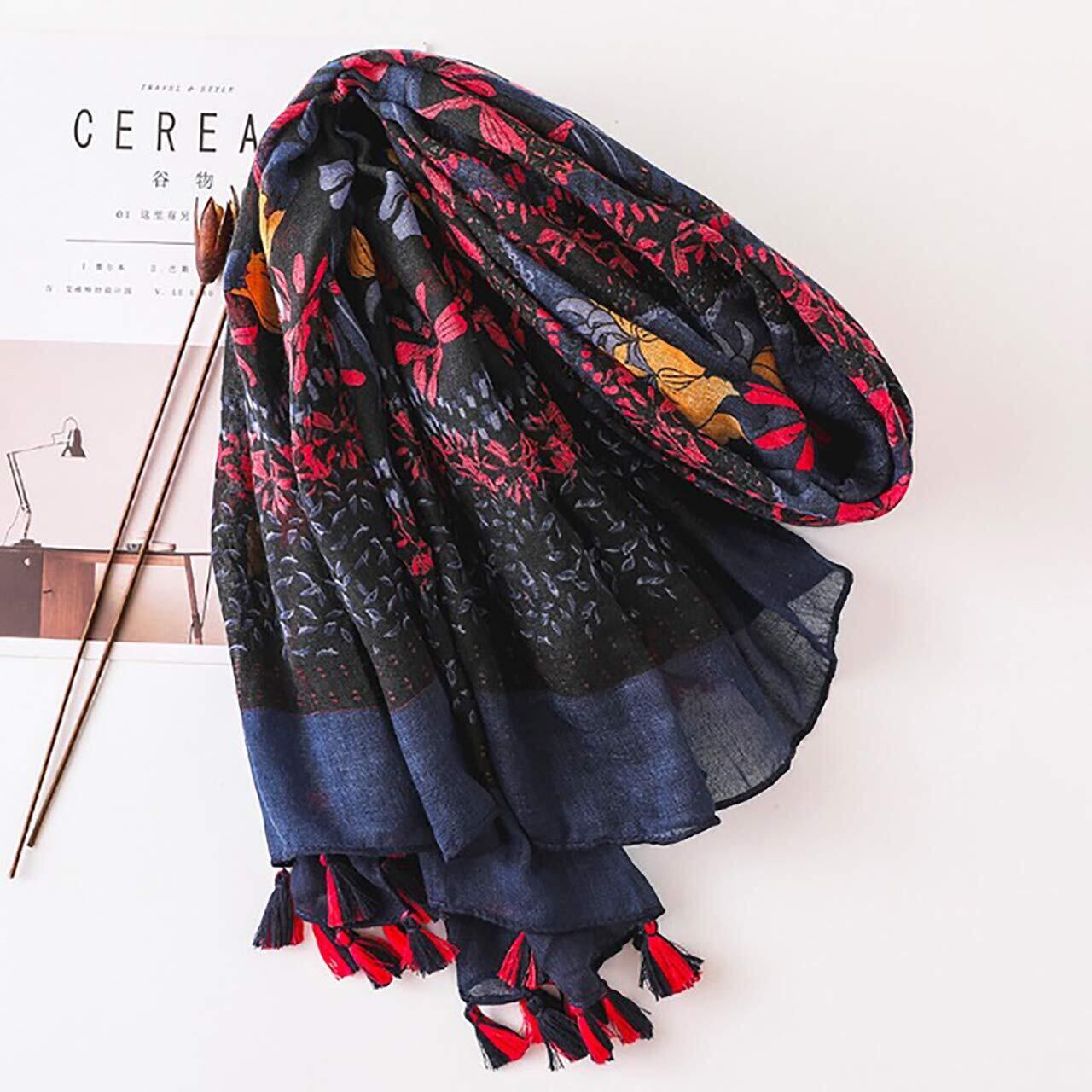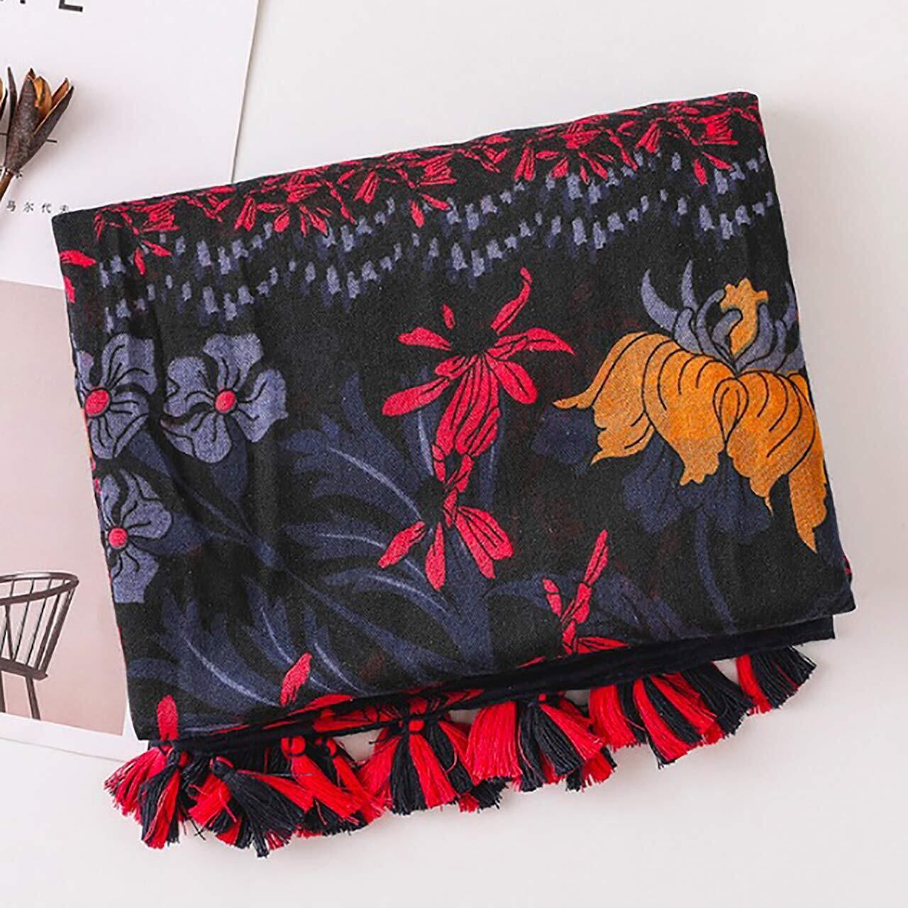 シックな色合いが おしゃれな カジュアルファッション フラワー 花柄 ストール 。折りたたみストールの様に使うのも◎ 色々な巻き方で 印象が大きく変わる おしゃれ アイテム。
