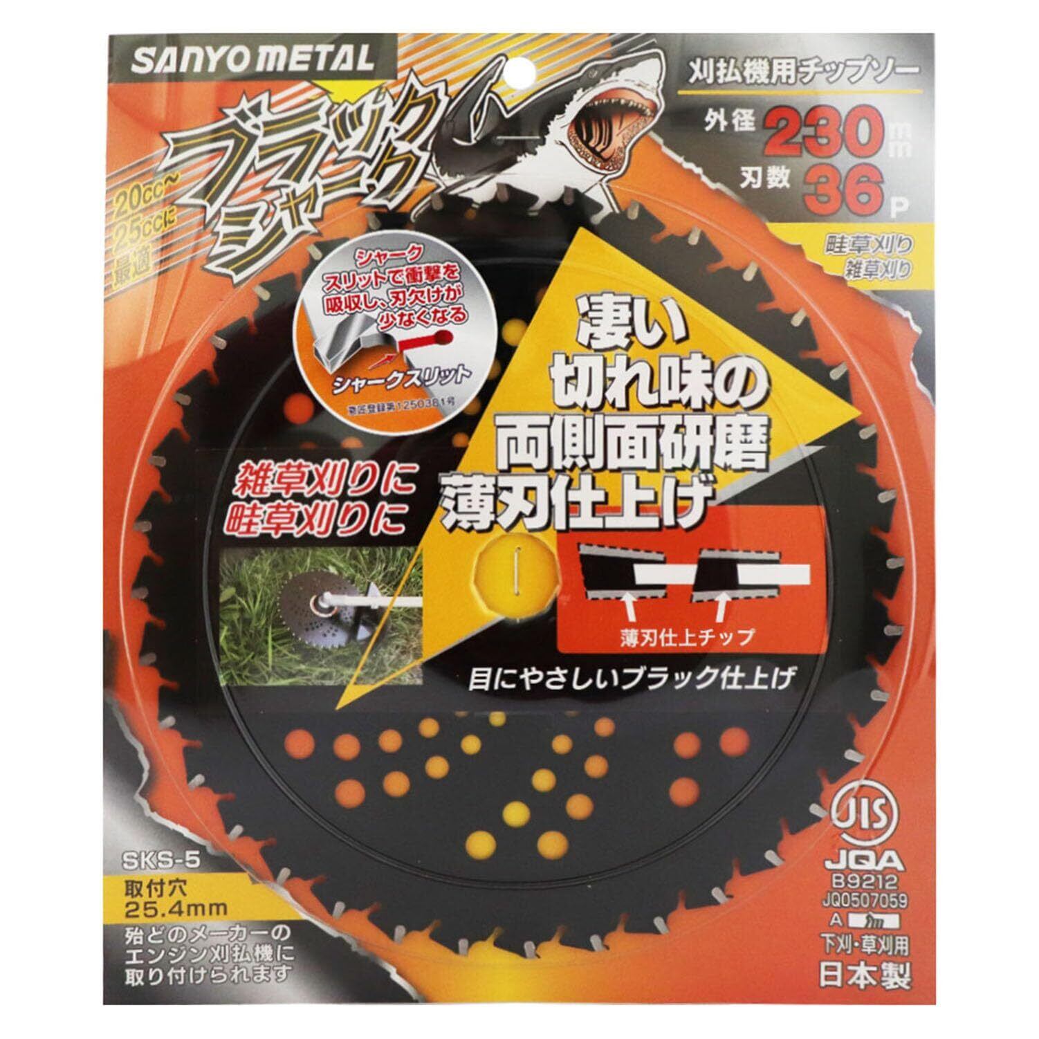 三陽金属(Sanyo Metal) 日本製 草刈機用チップソー ブラックシャーク 両側刃 230mm 36P 雑草刈り 畦草刈り 草刈り 除草