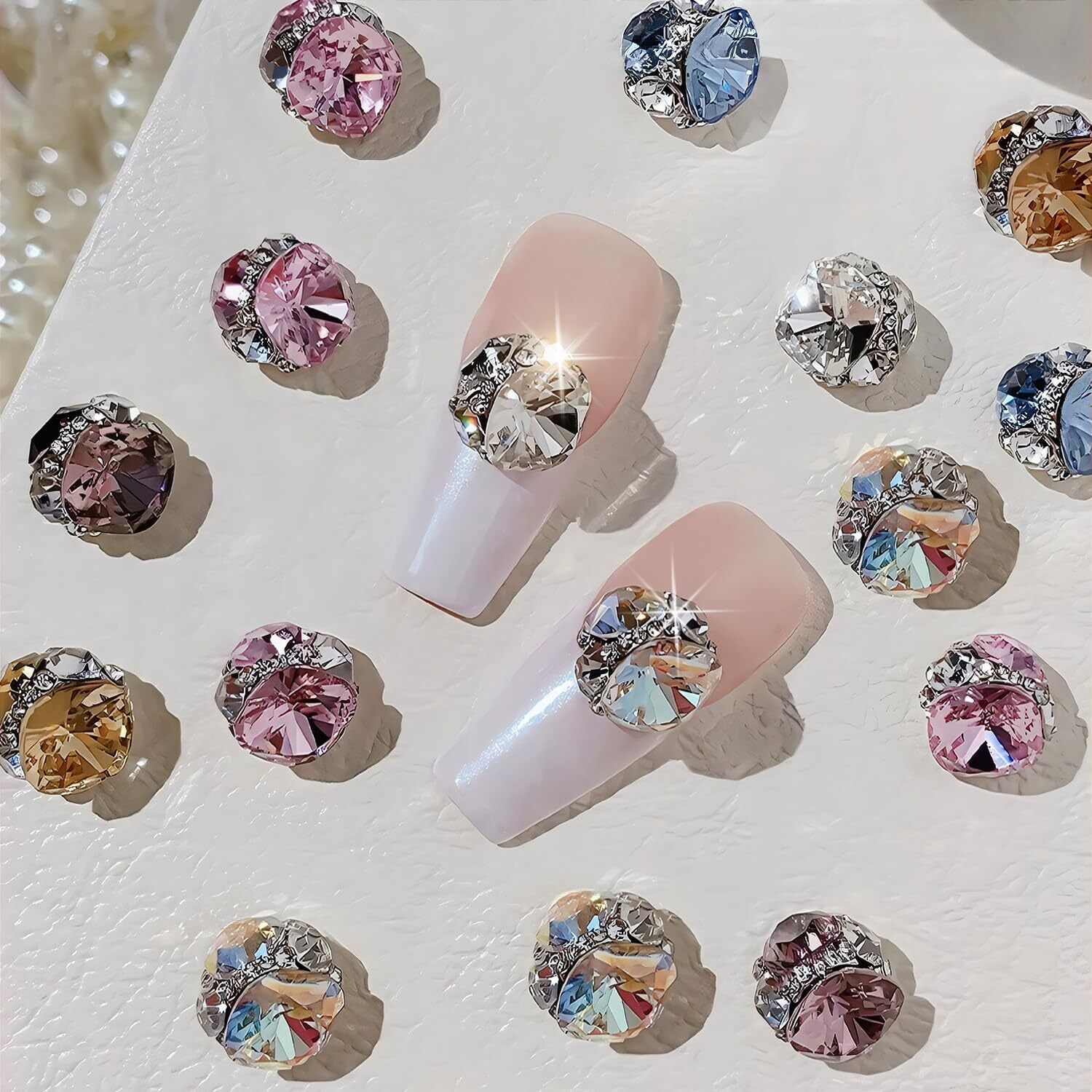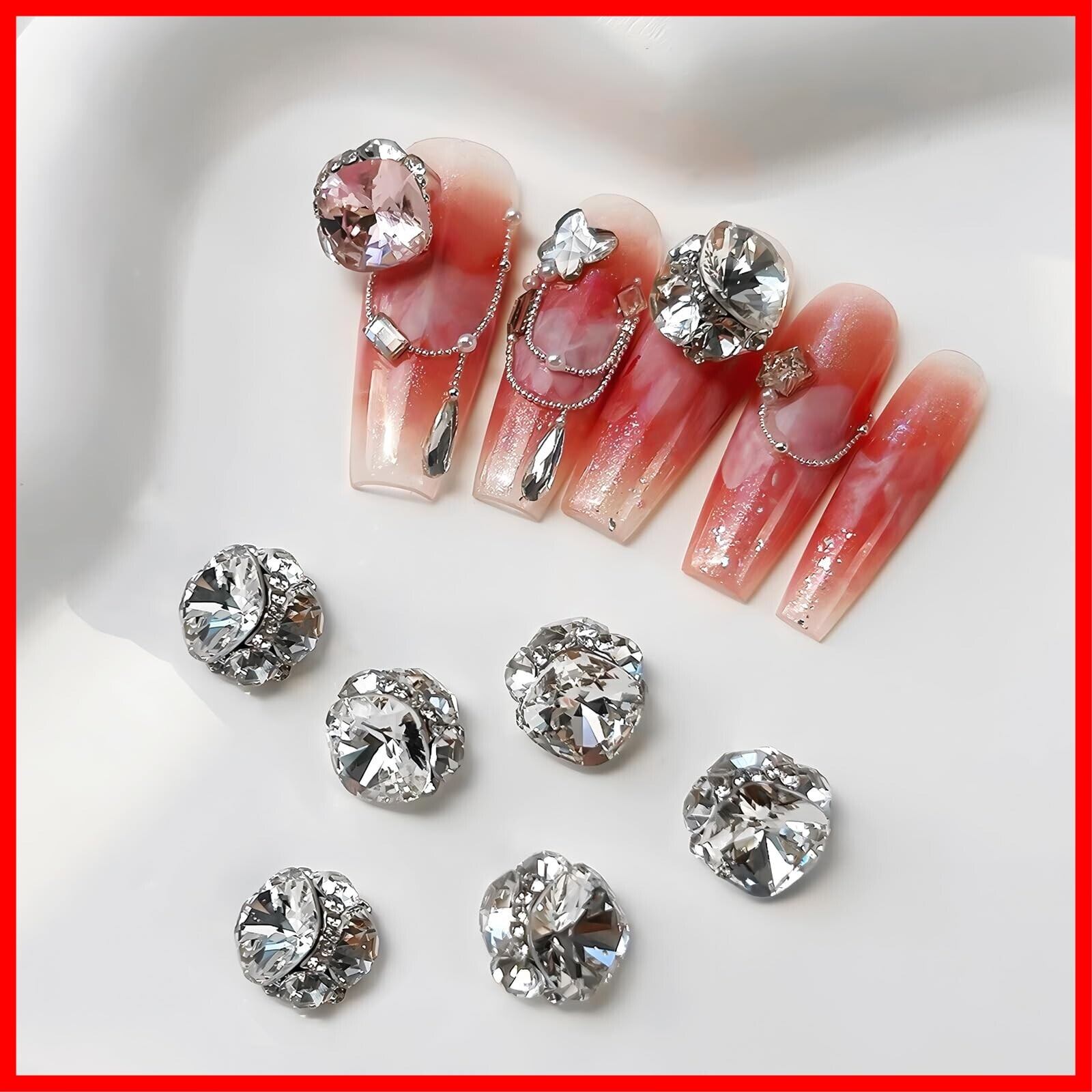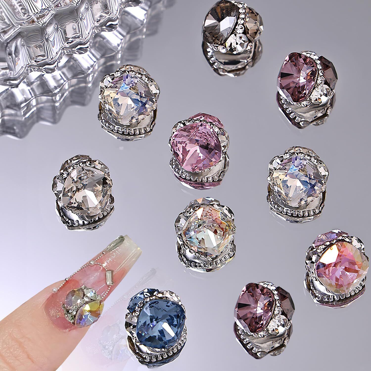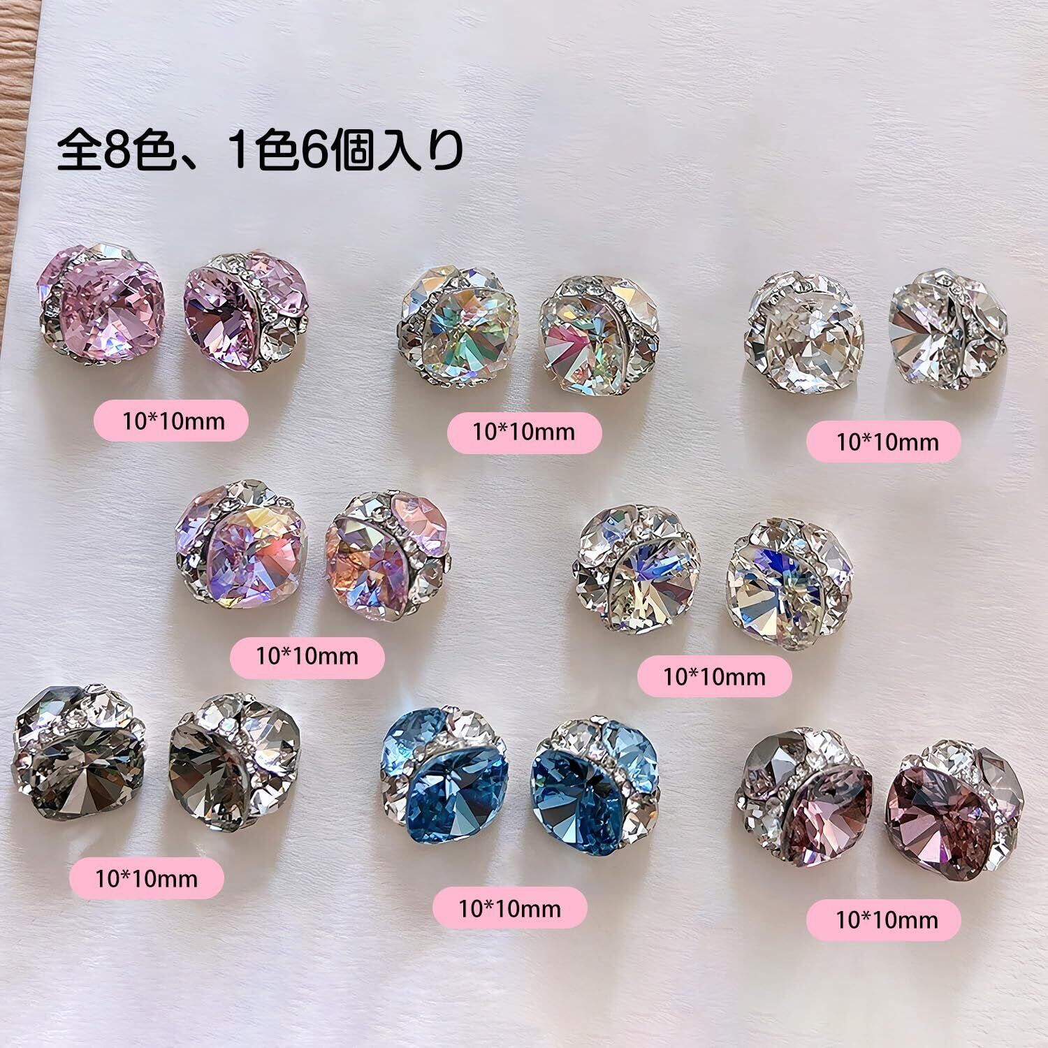 【キラキラ】宝石を積み上げたネイルストーンは、ゴージャス感にあふれています。マルチカットのデザインは異なる方向からの光を反射し、キラキラと輝いて非常に綺麗です
