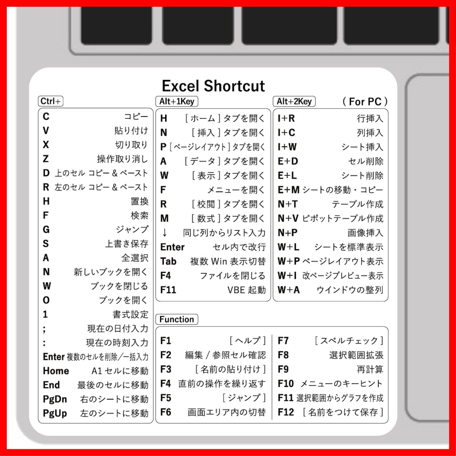 「Excel ショートカット ステッカー」は、あなたの作業効率を大幅にアップさせる日本製のステッカーです。シンプルに貼るだけで、Excel操作が直感的に行えるようになります!パームレストにも最適なサイズで、快適な作業環境を実現します。