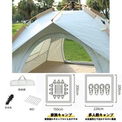 【適用範囲】アウトドア、キャンプ、ファミリーツーリング、ピクニック、ビーチ、釣り、登山、公園、スポーツ試合、災害時、シェルター、花見、釣り、運動会など様々な場所で活用できます。地面釘×8、ロープ×4、収納袋×1、日本語説明書付き×1。