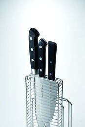 付属の包丁スタンドは、収納だけでなくデザイン性も兼ね備えています。使いたい時にサッと取り出しやすく、キッチン周りをスッキリと保てる点が嬉しいポイントです。また、包丁の刃を傷めず、安全に保管ができるので、安心してご利用いただけます。