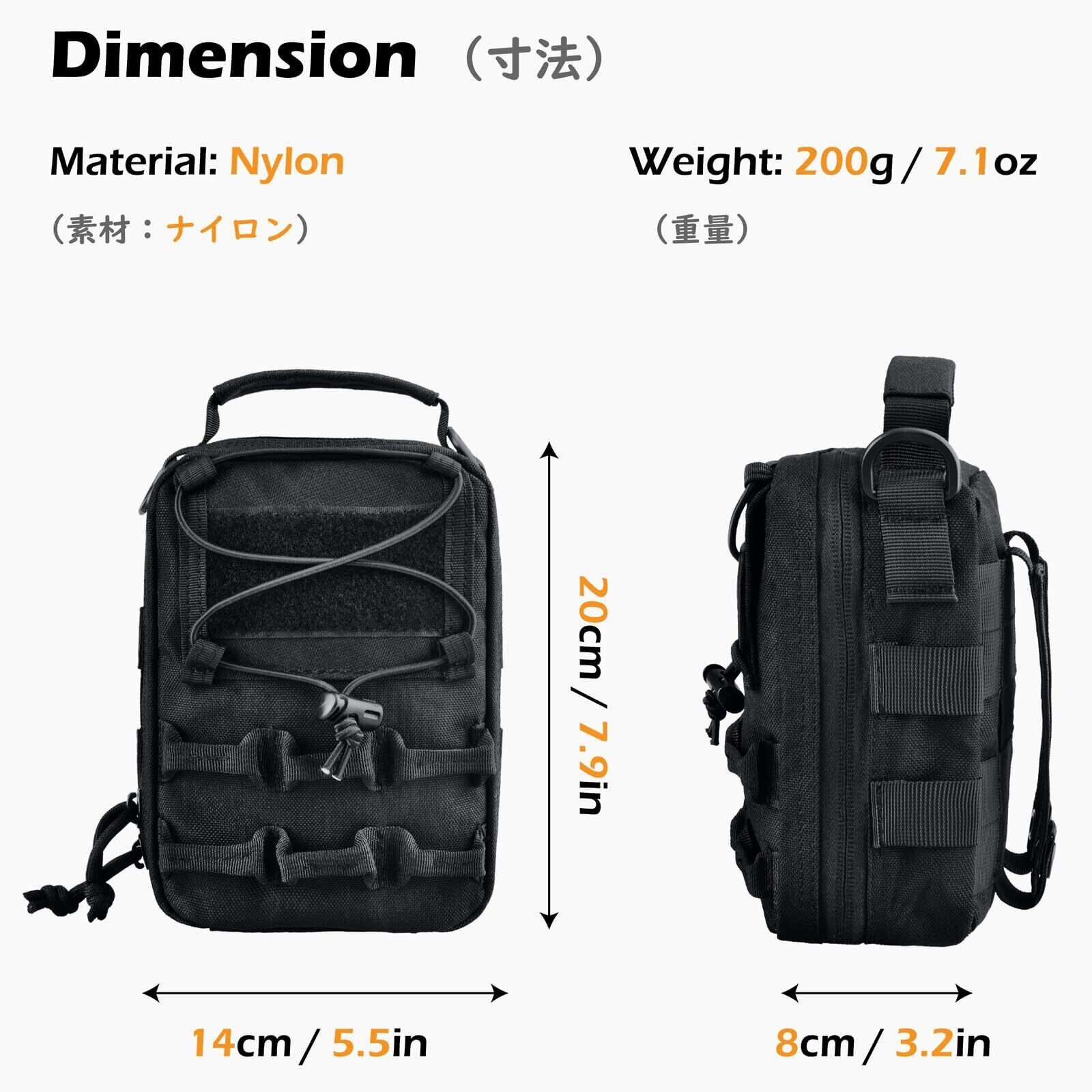 【仕様】- 生地:防水1000Dナイロン 寸法:14*20*8cm 重量:220g 品名:メディカルポーチ