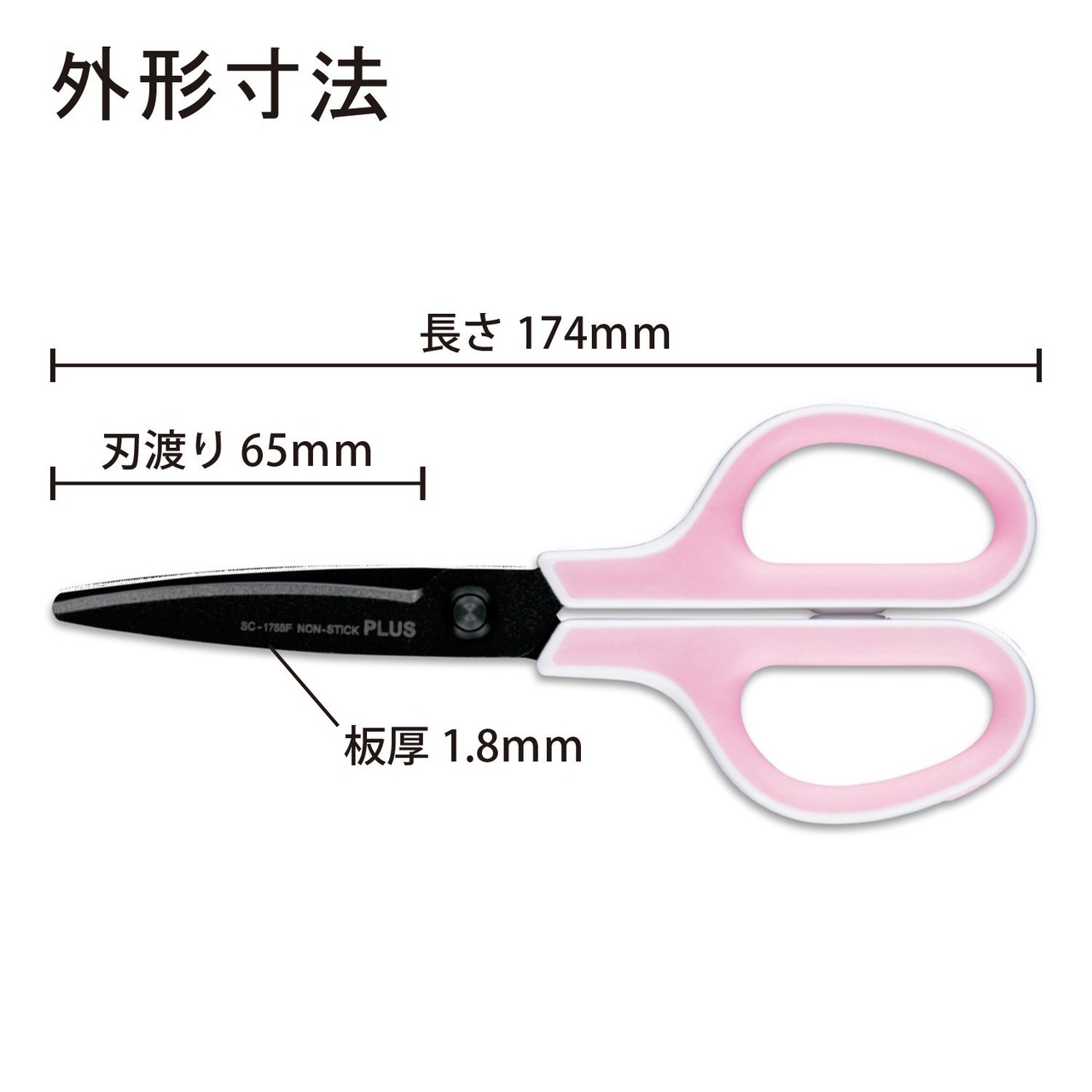 長さ:174㎜ 刃渡り:65㎜ 板厚:1.8㎜ カラー:ホワイト/ピンク