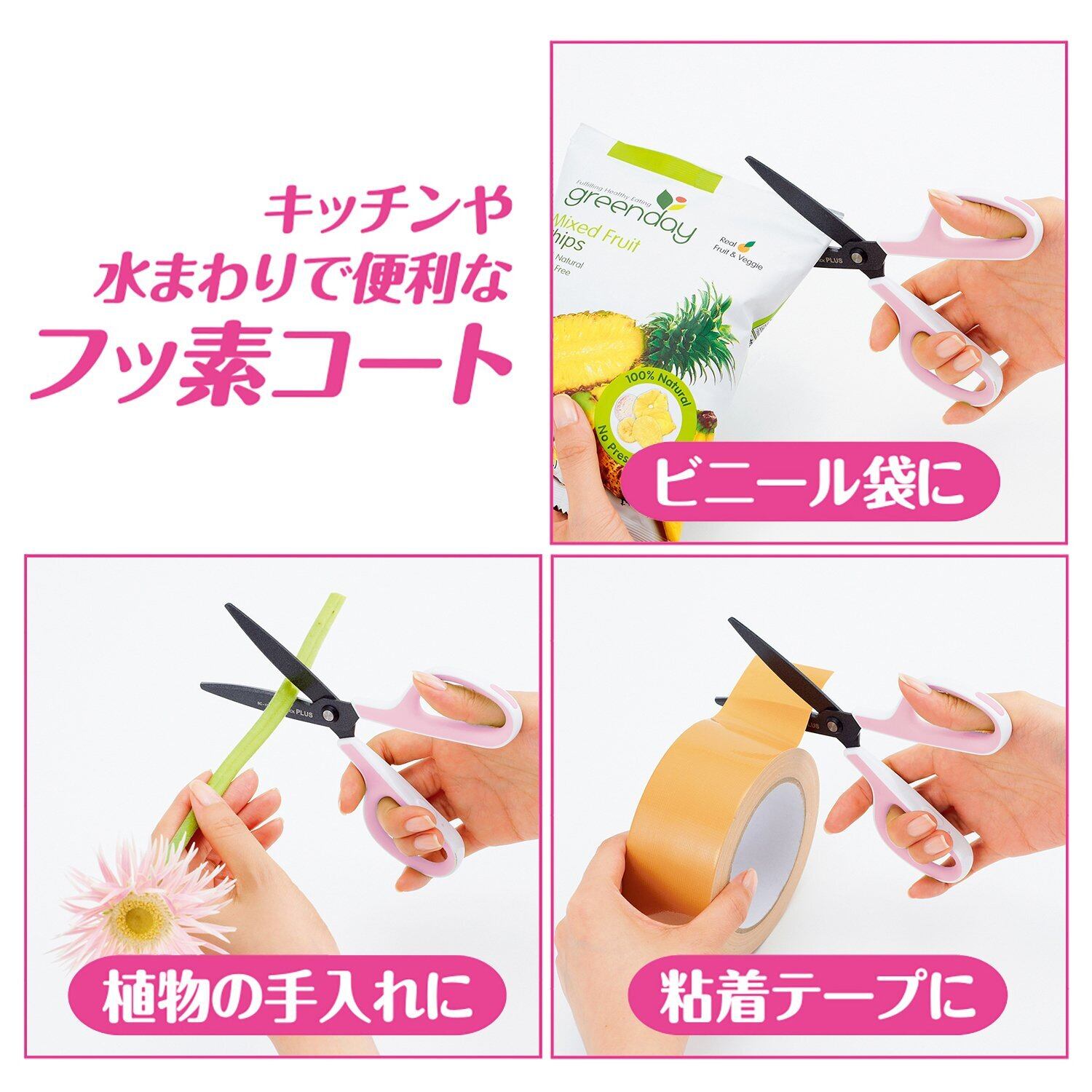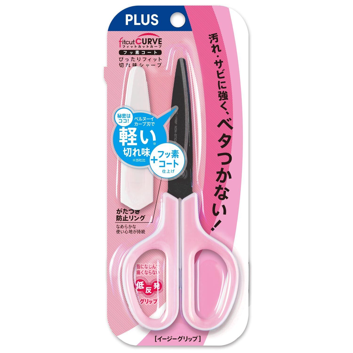 プラス はさみ フィットカットカーブ フッ素コート 低反発グリップ SC-175SF ホワイト/ピンク 34-547