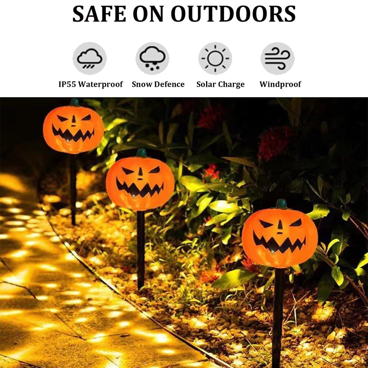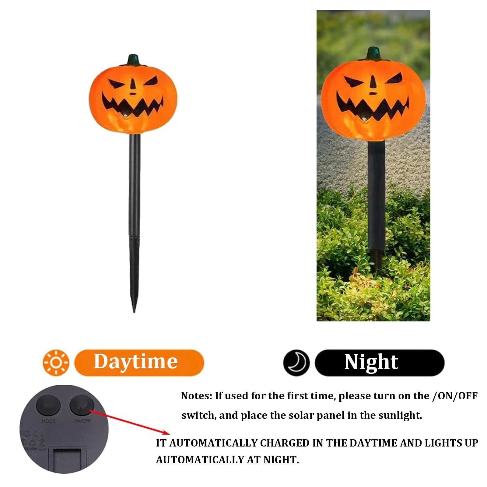 【簡単な設置】:ハロウィーンソーラーライトは安全で、専門家による設置は必要ありません。あなたは日陰なしで日光の下で地面に太陽の光を挿入することができます。すばやく簡単にインストールできます。