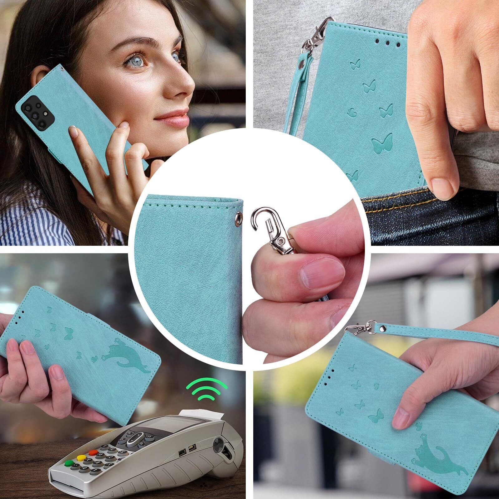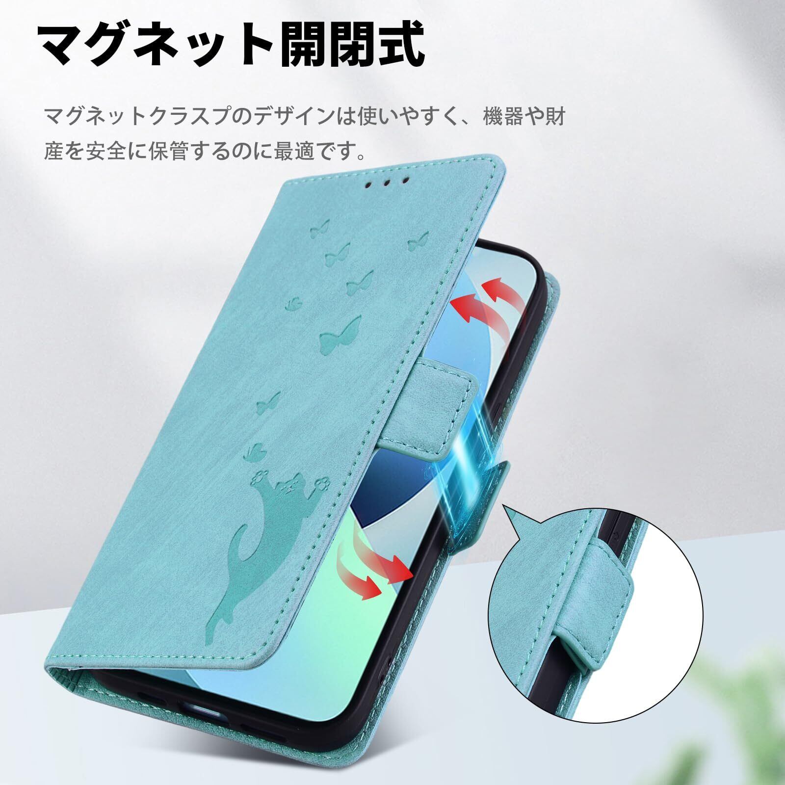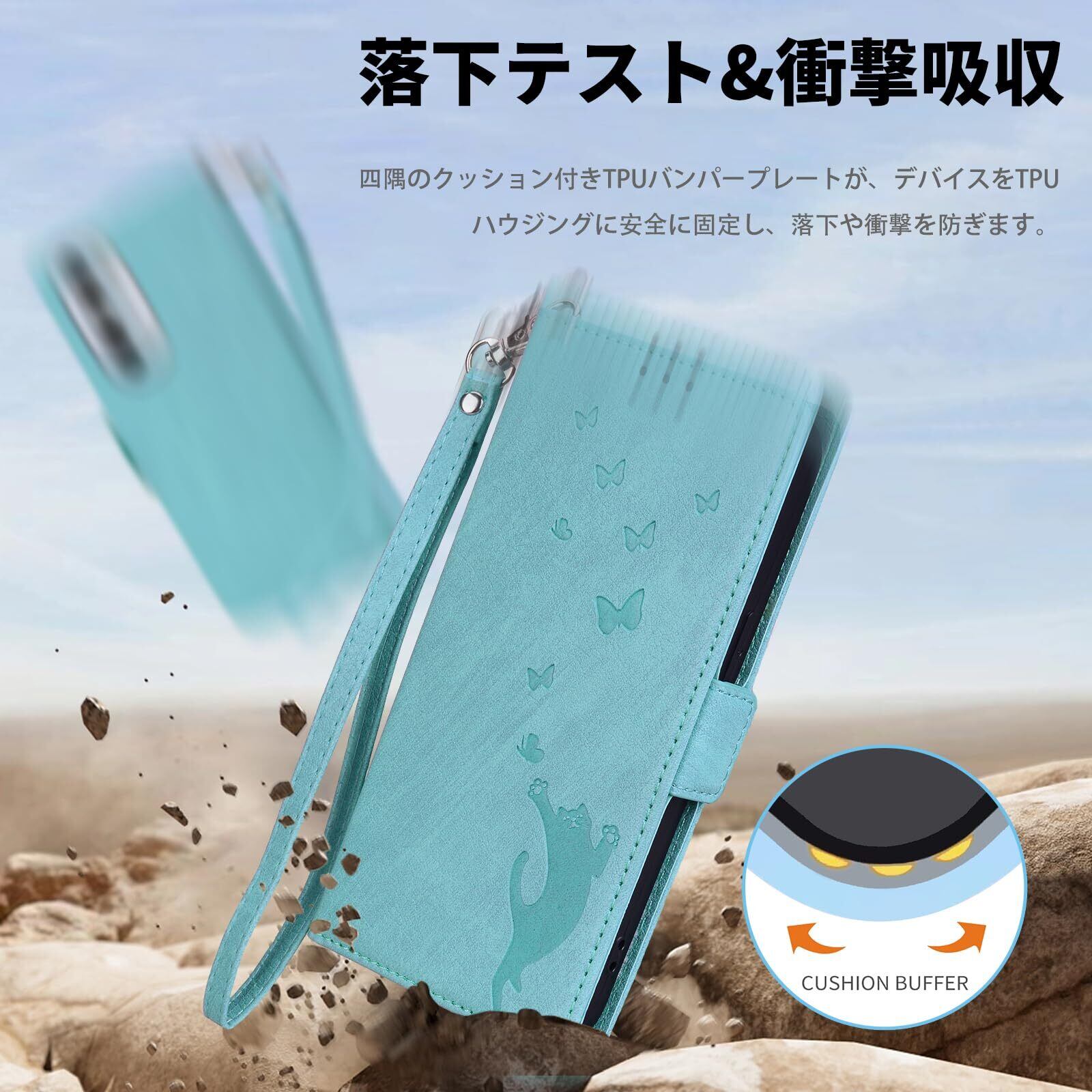 Kitzomi arrows We F-51B 手帳型スマホケース arrows we fcg01 マグネット開閉式スマホケース arrows BZ03 財布ケース 蝶と猫の3Dパターン スタンド キャッシュポーチ リストストラップ プレミアム耐久性PUレザー 強い磁気吸引 リストストラップ 落下防止 arrows We F-51B手帳型ケース[スカイブルー]