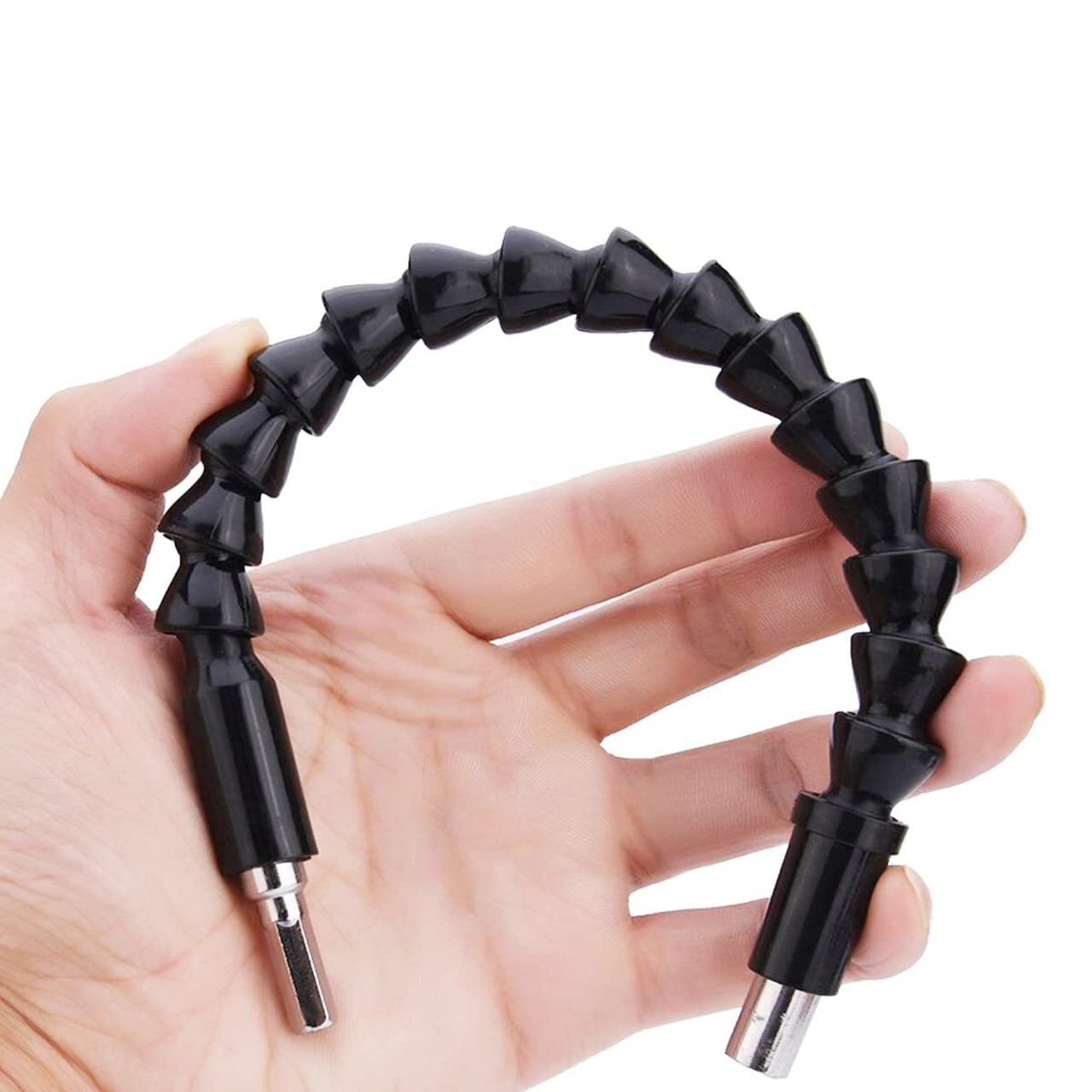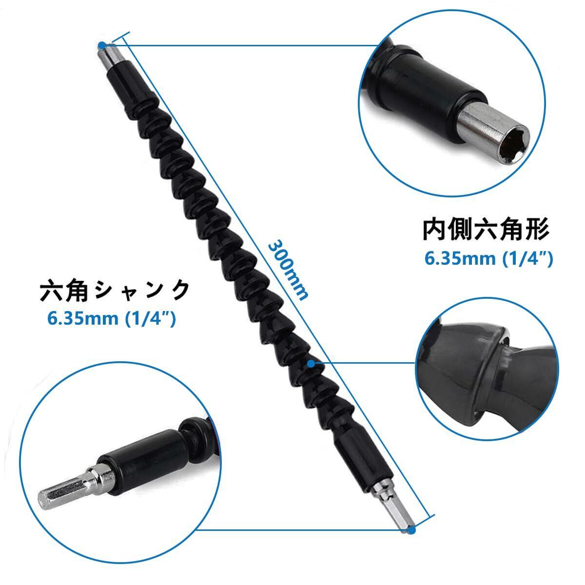 柔軟性:手の届かない奥まった所のネジ締め、穴あけが簡単にできるフレキシブルシャフトです。フレキシブル電動ドリルシャフト「蛇が如く」の登場です!!!!最大360度まで自由に曲がるフレキシブルシャフトで、狭い場所や届きにくい角度での作業が簡単に行えます。シャフトの頭部が六角形シャンクドライバービットを装着することができます。
