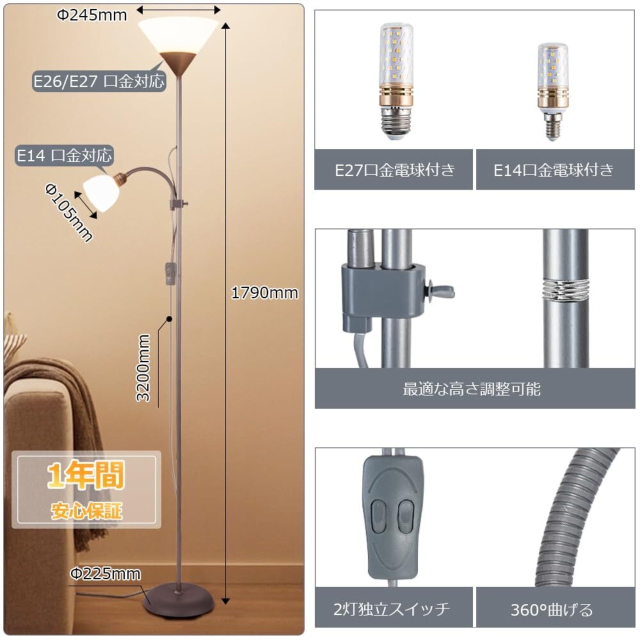 【セット内容・保証期間】スタンドライト本体、led電球*2、リモコン*1(電池別売り)、取扱説明書。弊店は12ヶ月の保証期間を提供いたします。万が一、お買い上げ後12ヶ月以内に製品に不具合が生じた場合は、アマゾンの購入履歴より弊店(Arayuru)までご連絡ください。すぐご対応させていただきます。