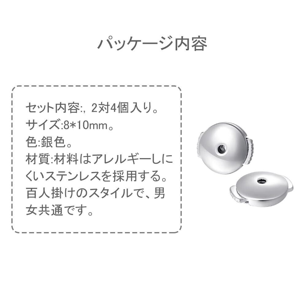 YUWENW ピアス ピアスキャッチ 取れないピアスキャッチ 落ちない 金属アレルギー対応 4個 2ペア 下向き防止 紛失防止 両耳用 男女兼用 シルバー