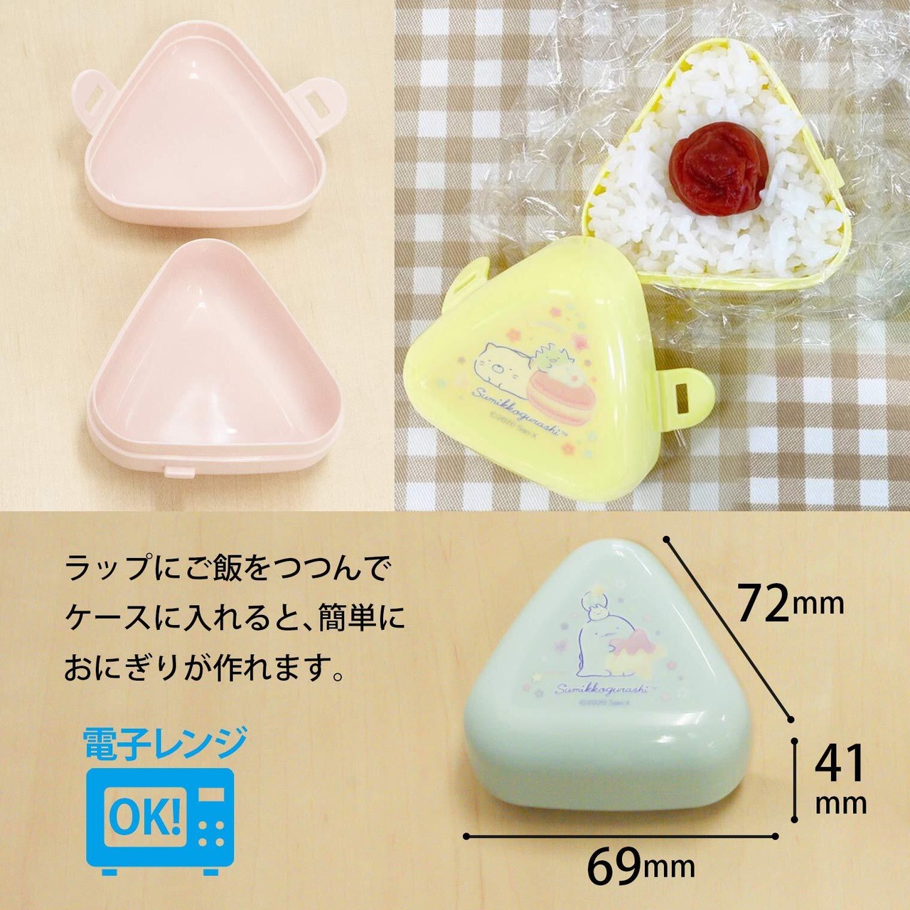 [OSK(オーエスケー) 弁当箱 すみっコぐらし にぎらず作れる おにぎりケース 3個セット 日本製 電子レンジ対応 おしゃれ かわいい シンプル 簡単 時短 ランチボックス 大人用 子供用 学生 男女兼用 LS-2]