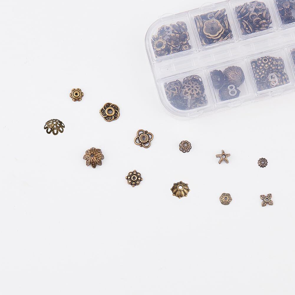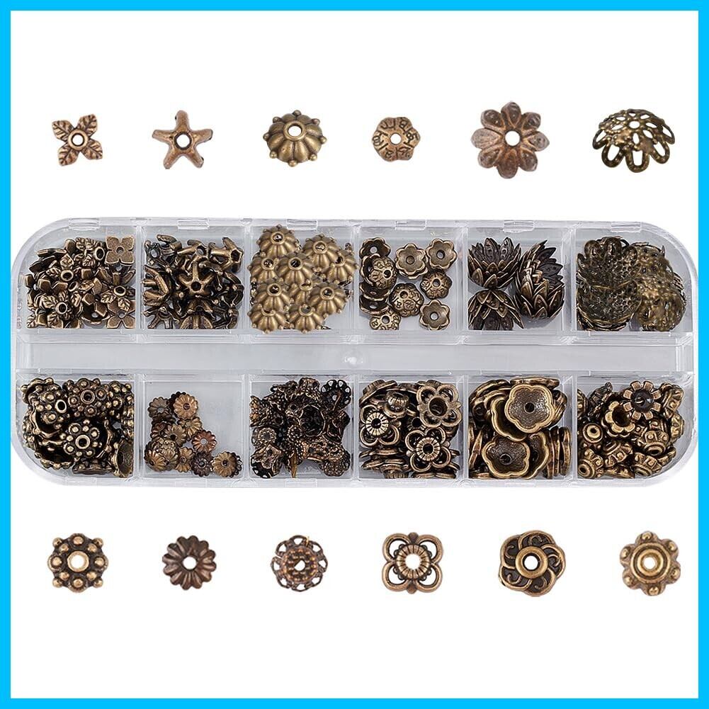 [SUNNYCLUE 240個12種 ビーズキャップ 花座 座金 ビーズ アンティークゴールド 銅色 合金ビーズ キャップ 花形 菊座 透かしキャップ 透かしパーツ スペーサービーズ フラワー チャーム アクセサリーパーツ 花状 チベット風 ビーズキャップ ビーズカバー DIY用 銅色 ビーズ 割れ隠し 手芸用品 手作り 座金 ハンドメイド 手芸材料 クラフト用品 ブレスレット ネックレス ルースビーズ チャームパーツ アクセサリーパーツ 基礎パーツ ジュエリー作り レディース]