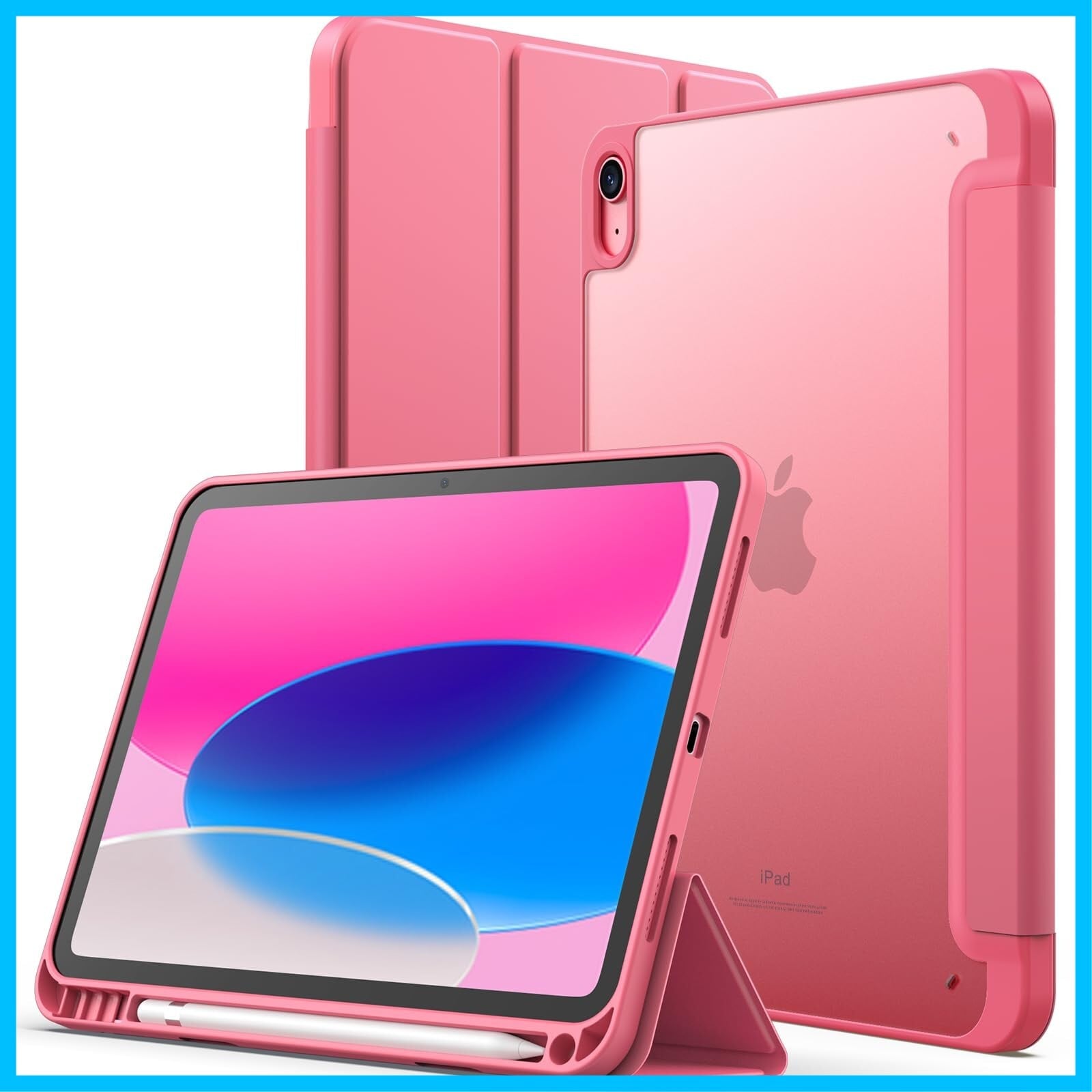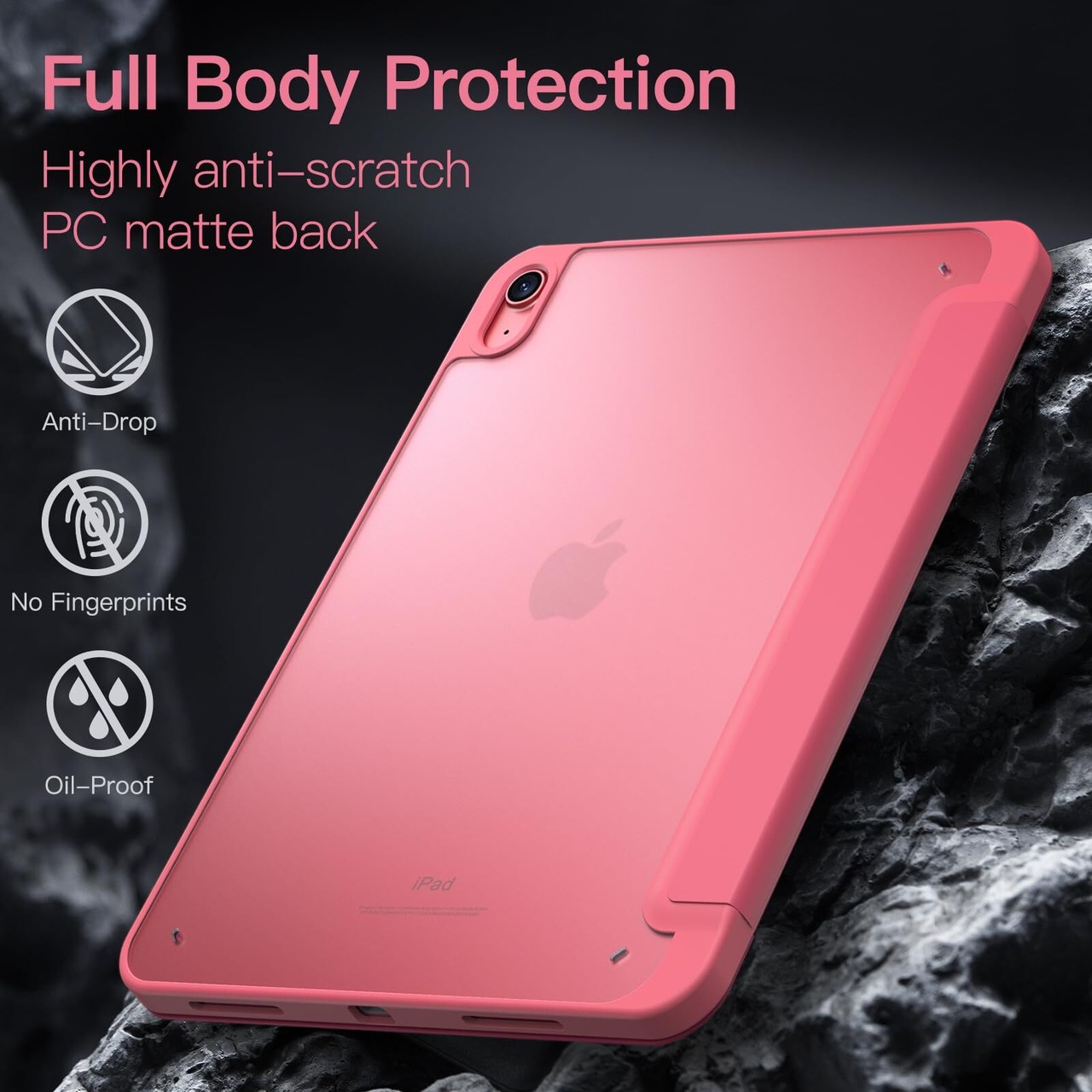 [JETech iPad(A16)マットケース 第11/10世代(2025/2022モデル)用Pencilホルダー つや消しの半透明の背面 薄型 スタンド 保護 タブレットカバー (ピンク)]