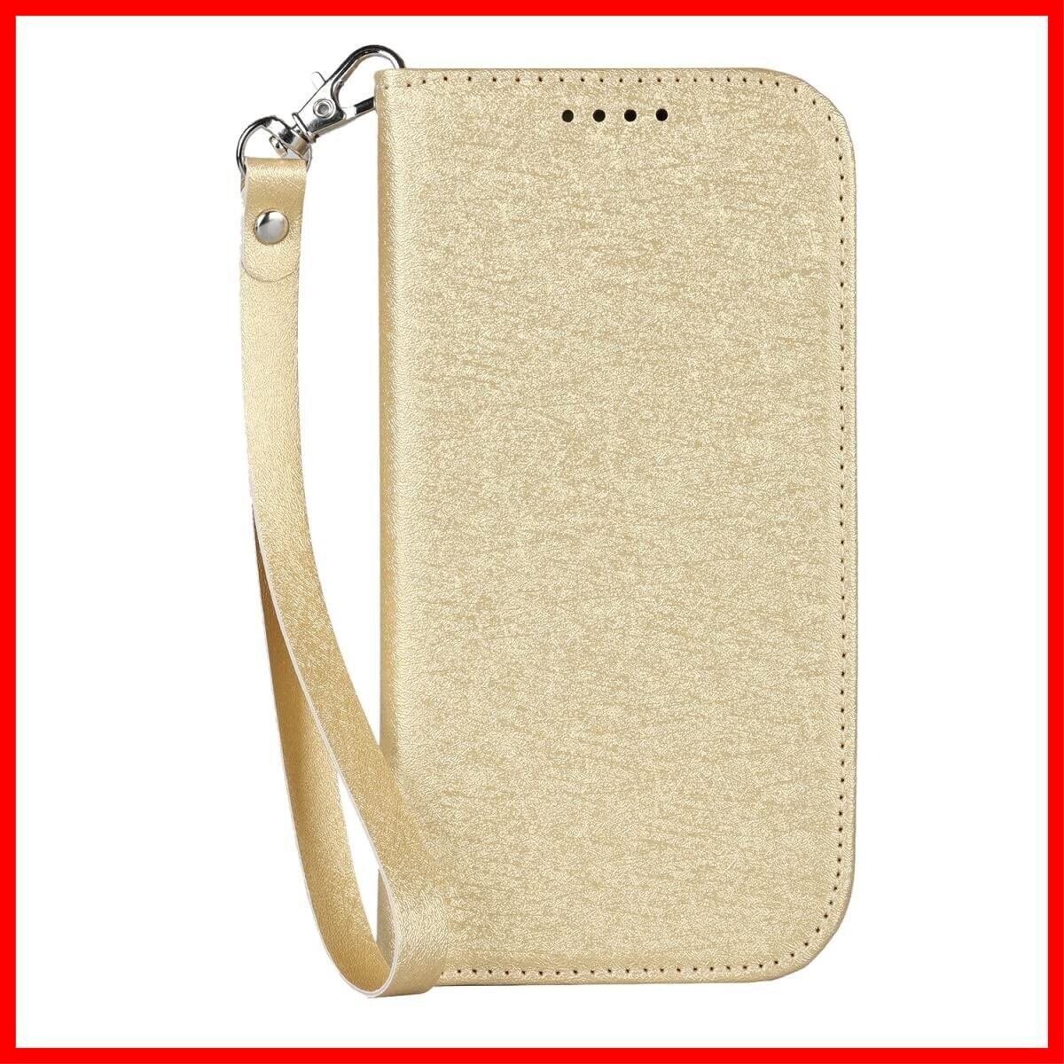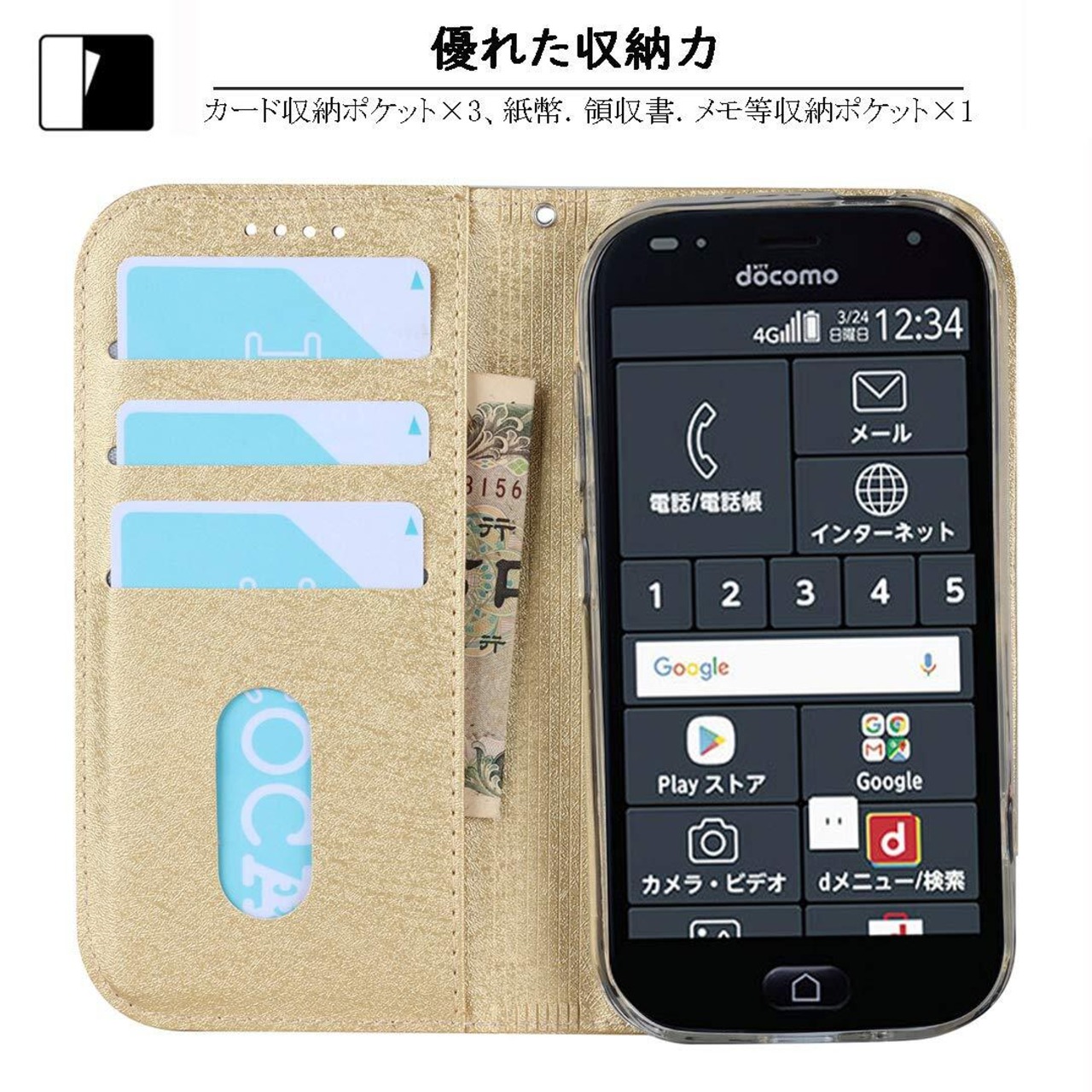 [Elick らくらくスマートフォン F-42A らくらくスマートフォン me F-01L 適用 ケース 手帳型 薄型 高級PUレザー らくらくスマートフォン F-42A ケース カバー マグネット式 ベルトなし ストラップ付き カード収納 FUJITSU F-42A ケース ゴールド]