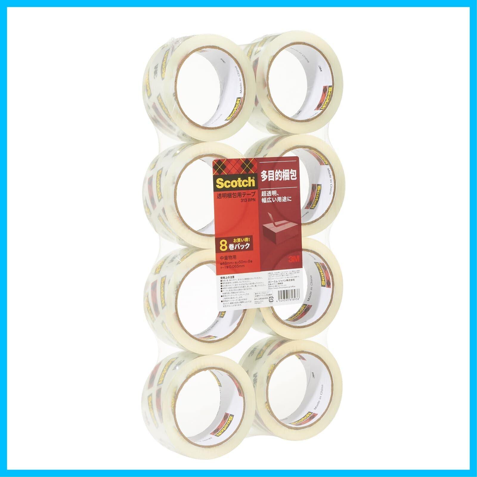 3M スコッチ ガムテープ 梱包テープ 中軽量用 48mm×50m 8巻パック 313 8PN
