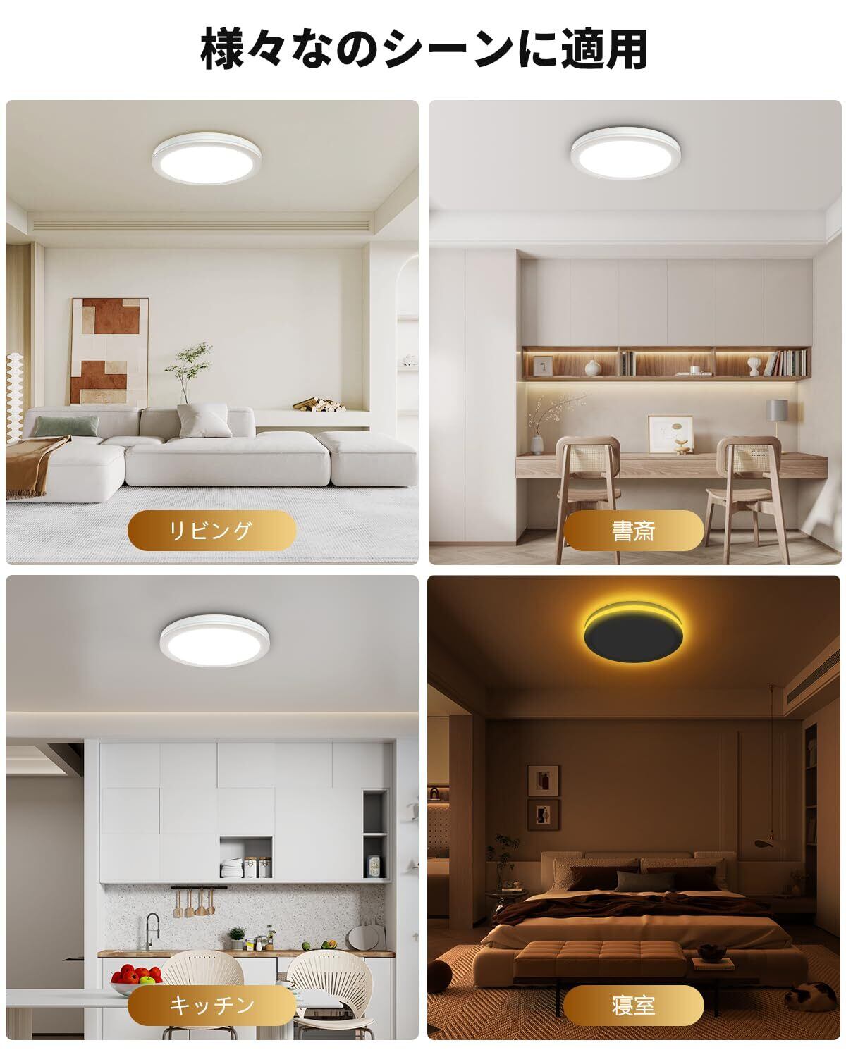 薄型で軽量のため、取り付けも簡単で、天井にすっきりと馴染むことができます。リビング、寝室、キッチンなど、さまざまな場所でご使用いただけます。おしゃれで機能的なこのシーリングライトを、ぜひお手元に!