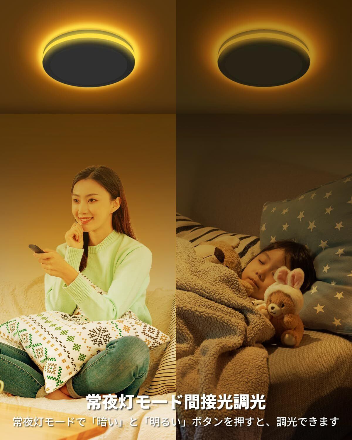 【最新機能】 ・リモコンの「点灯」と「常夜灯」ボタンを押すことで、バックの常夜灯と前面のメインライトを同時に点灯できます。 ・「明るさ」や「暗さ」ボタンで、常夜灯の明るさも調整可能です。