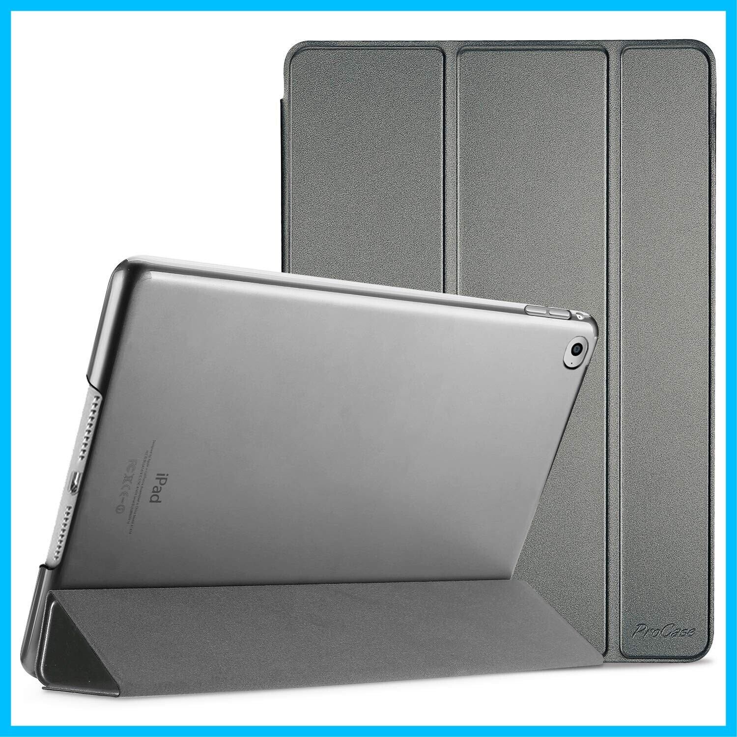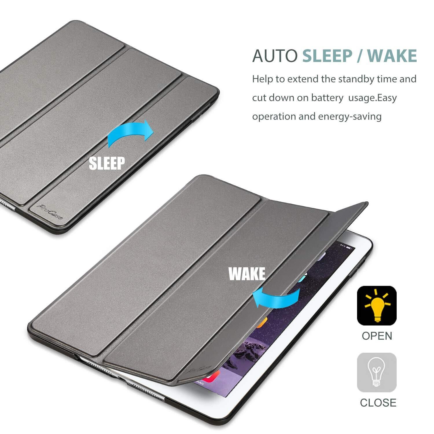 ProCase iPad Air 2(2014発売)ケース スマート 超スリム スタンド フォリオ保護ケース 半透明フロスト バックカバー 対応端末:Apple iPad Air 9.7" 第2世代(A1566 A1567)-メタリック