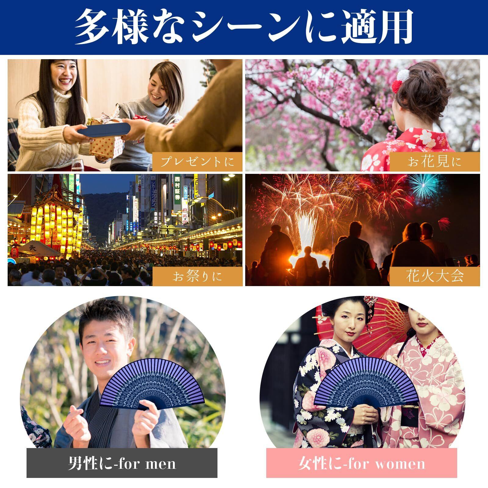 【適用場合が多い】この扇子は、個人の使用に最適なアイテムです。まず、茶道の場で使用する際には、優雅な動作でお茶を点てるなど、日本の伝統的な雰囲気を演出するのにぴったりです。また、成人式や祝いの場でも、華やかな装いと相まって、一層の華やかさを添えることができます。