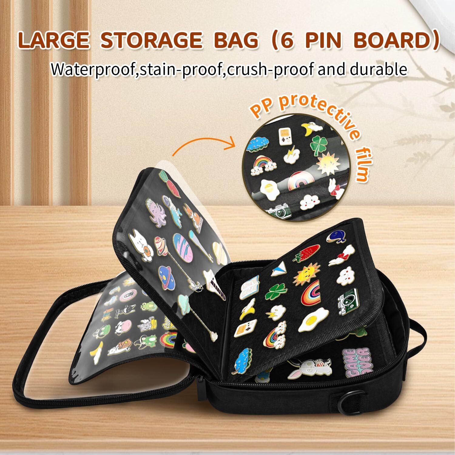 BOHEMIABY 黒 ピンバッジ ケース, 6ページ 缶バッジ ディスプレイと 保護フィルム, 旅行 缶バッジ 収納, 丈夫なハンドルとショルダーストラップ付き 適切な ブローチ、イヤリング、バッジ