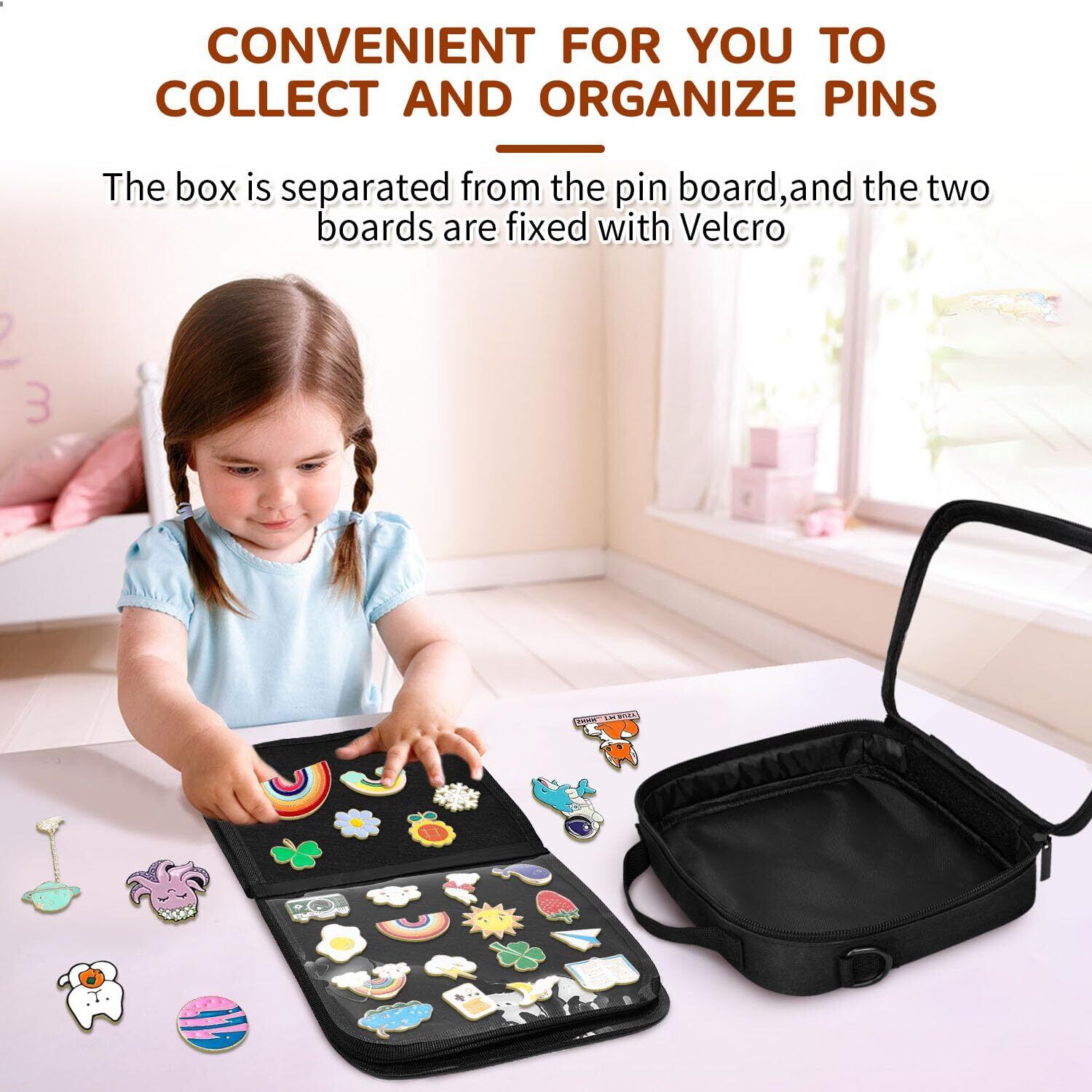 素晴らしいギフト - ピンバッジ ケース デザインのハンドヘルドと取り外し可能なショルダー ストラップ デザインにより、簡単に持ち運び、ピンの交換、ピンのディスプレイが可能です。ブローチ、イヤリング、その他のコレクションにも適しています。ハロウィーン、クリスマス、記念日、ピンコレクターパーティーなど、ピンコレクター、友人、家族などへのプレゼントに最適です