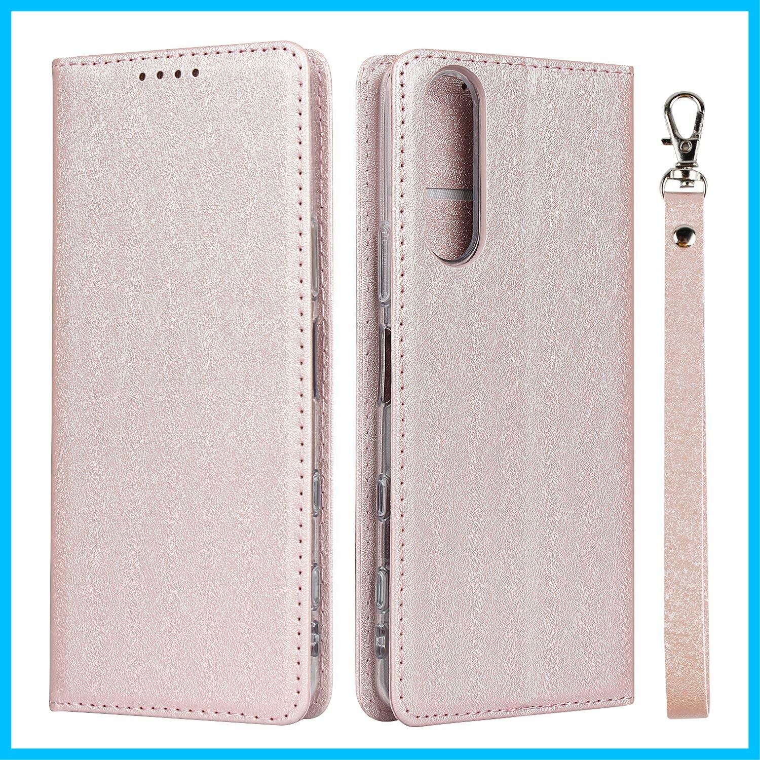 Pelanty For Sony Xperia 5 II ケース手帳型 SO-52A SOG02 財布型カバー case PUレザー 薄型 スマホケース ストラップ付き ベルトなし カード収納 マグネット式 スタンド機能 ソニー エクスペリア5 II so52a 携帯カバー 滑り止め 全面保護 耐衝撃 軽量 (ピンク)