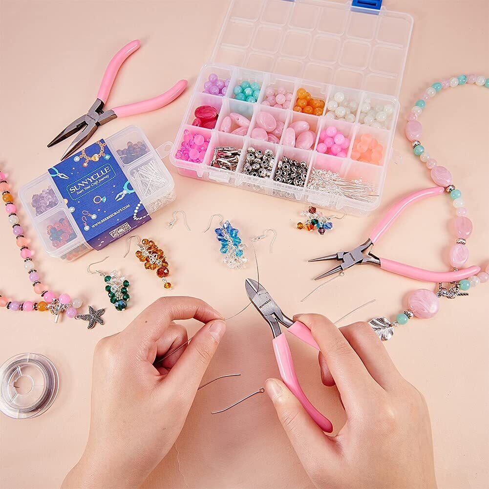 [SUNNYCLUE ナイロンジョー ラウンドノーズペンチ 丸ペンチ ラウンドプライヤー 極細 先細ペンチ ジュエリーツール 丸ヤットコ ナイロンジョー プライヤー ペンチ ミニ精密 ピン曲げ ワイヤー マルカン ジャンプリング 手芸用品 クラフトツール プライヤーセット アクセサリー用 製作 ジュエリー作成用 炭素鋼 ピンク DIYクラフト ハンドメイド 手作り 工具 道具]