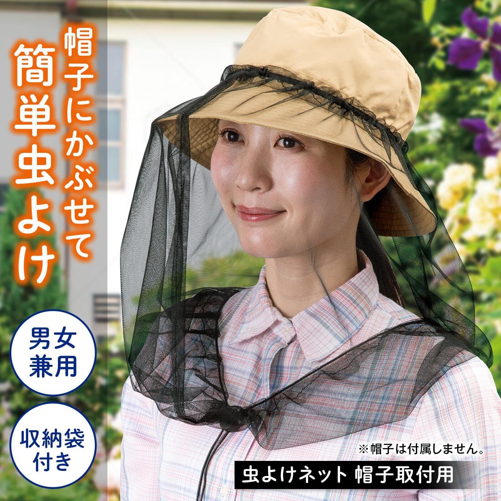 コモライフ 虫よけネット 帽子取付用 虫除け ネット ブラック 帽子 虫対策 メッシュ 園芸 畑仕事 アウトドア
