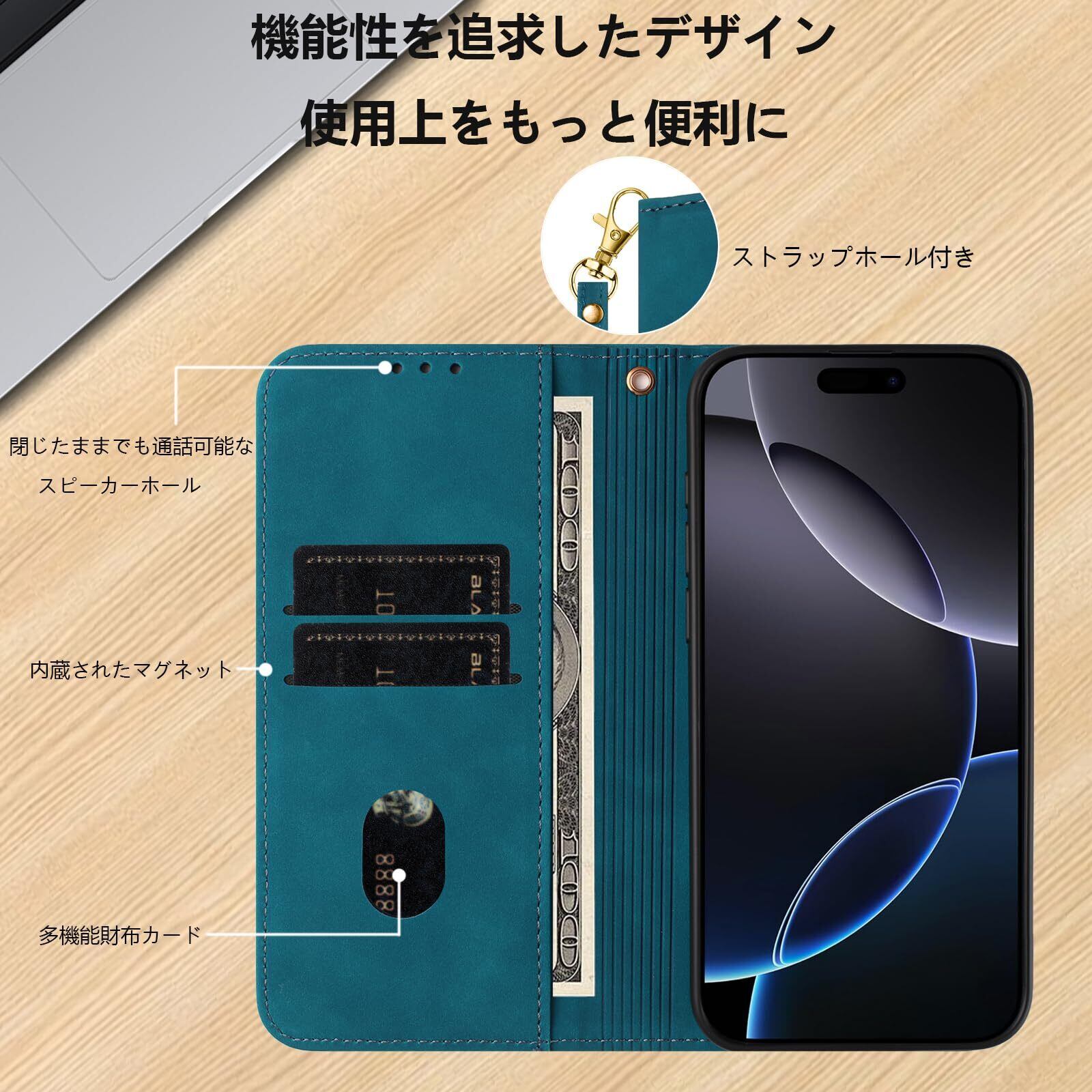 Google Pixel 8A ケース手帳型 Pixel8a カバー グーグル ピクセル Pixel8 A 手帳型ケース 同色ストラップ付き 携帯カバー 肌触り良いレザー スマホケース マグネット内蔵 全面保護 耐衝撃 耐摩擦 スタンド機能 カードケース 財布型 カード入れ ターコイズ