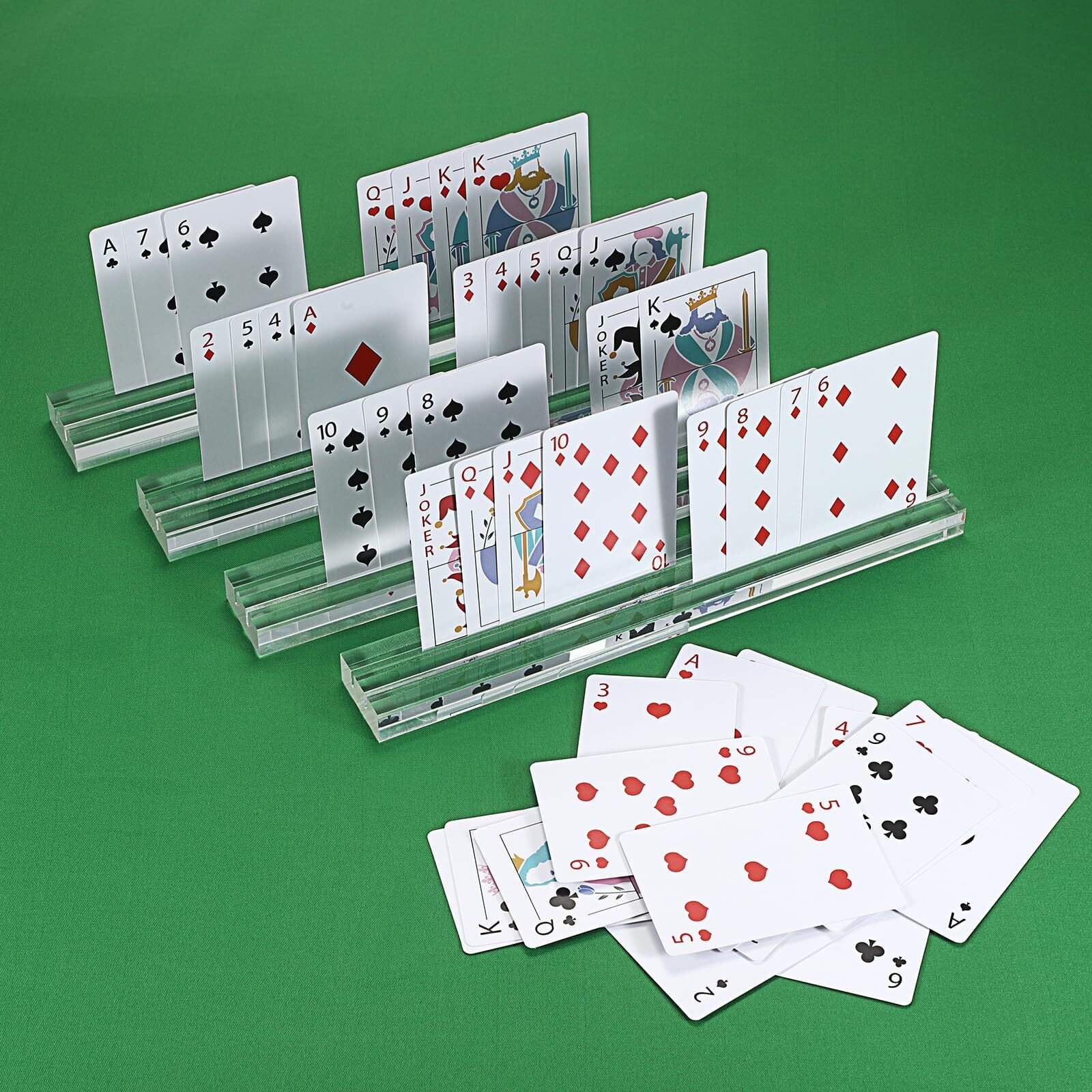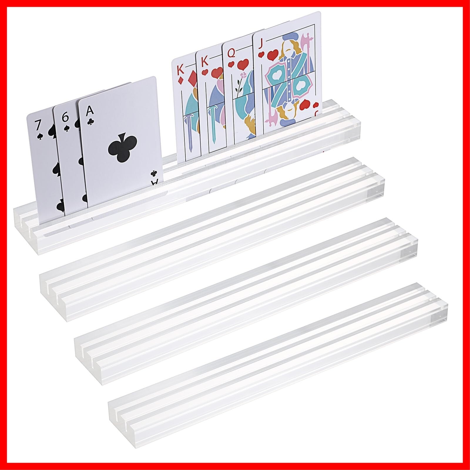Sumnacon カードゲームスタンド ボードゲーム クリアトランプスタンド アクリルカード立て ダブルカードスロット 花札スタンド 2連の溝 透明 4本セット