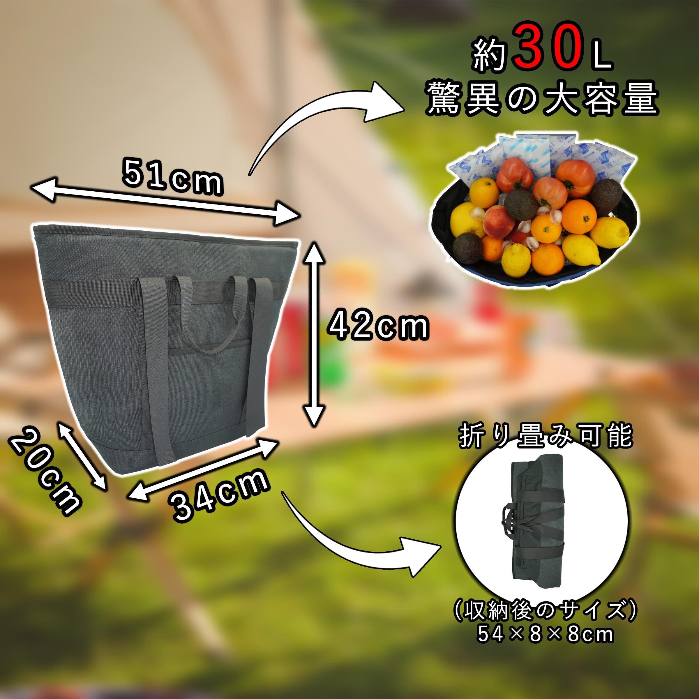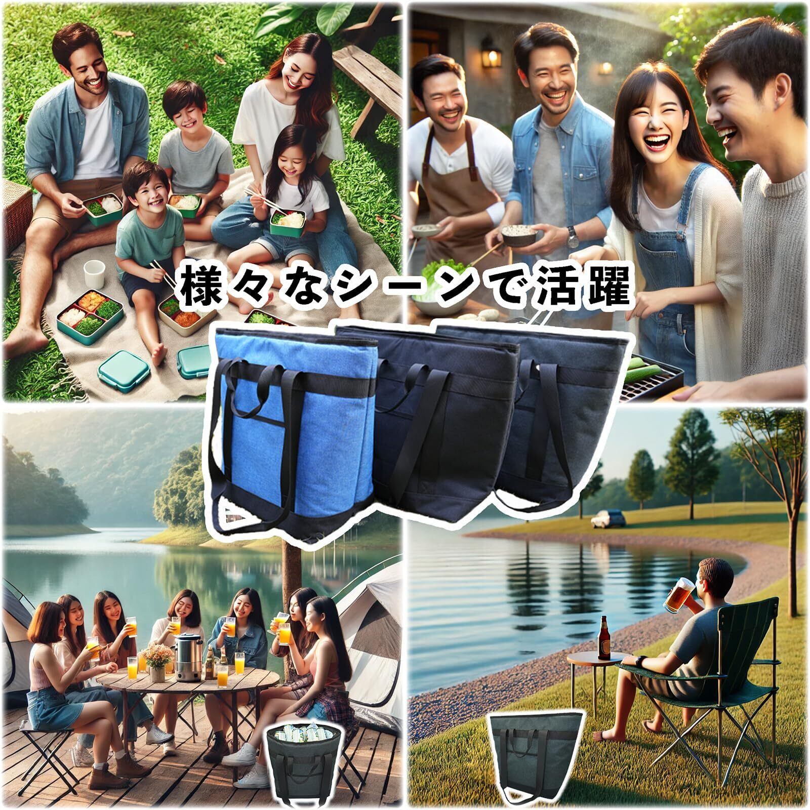 【さまざまな用途】 アウトドアキャンプや学校の運動会など、長時間の保冷が必要な場面に最適です。スーパーの買い物袋としても使用でき、多用途に活躍します。肩に掛けても、背負っても、手提げでも使用可能なデザインで、収納も簡単です。優れた保冷・保温性能を提供し、最大30Lの大容量で、外装と内装には防水素材を使用しています。