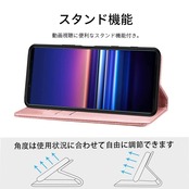 手帳型の特長を活かしたスタンド機能が搭載されており、動画視聴やビデオ通話などでも便利です。お好きな角度に調整できるので、手を使わずに楽にスマホを操作できます。旅行やお出かけの際にも活躍することでしょう。