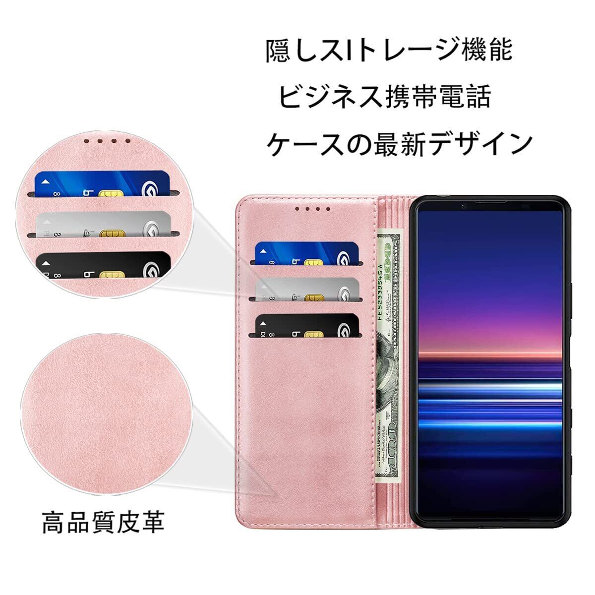 Xperia 5 V ケース 手帳型 高質PUレザー ソニー エクスペリア5 V ケース 耐衝撃 SO-53D ケース SOG12 ケース Sony Xperia 5 V カバー 内蔵マグネット開閉式 ベルトなし Xperia 5 V スマホケース おしゃれ カードポケット スタンド機能 便利 スプラット同梱 携帯ケース(ピンクゴールド)