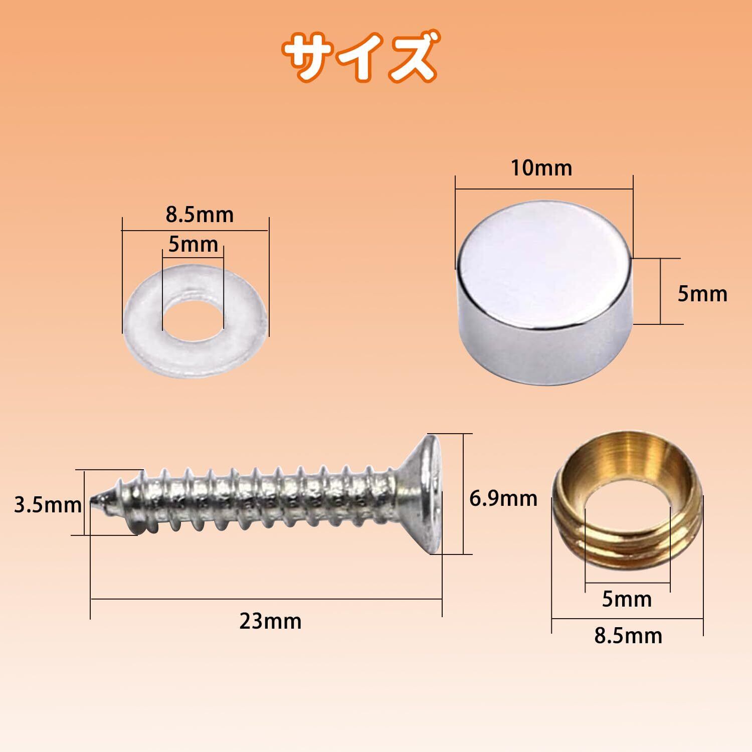 Aicosineg 飾りビス 化粧ビス ビスキャップ ビス プレート カバー キャップ 表札 固定 装飾 装飾キャップ付き 留金具 留め具 表札 DIY 銅 全長23mm キャップ直径10mm ネジ直径3.5mm 8個セット