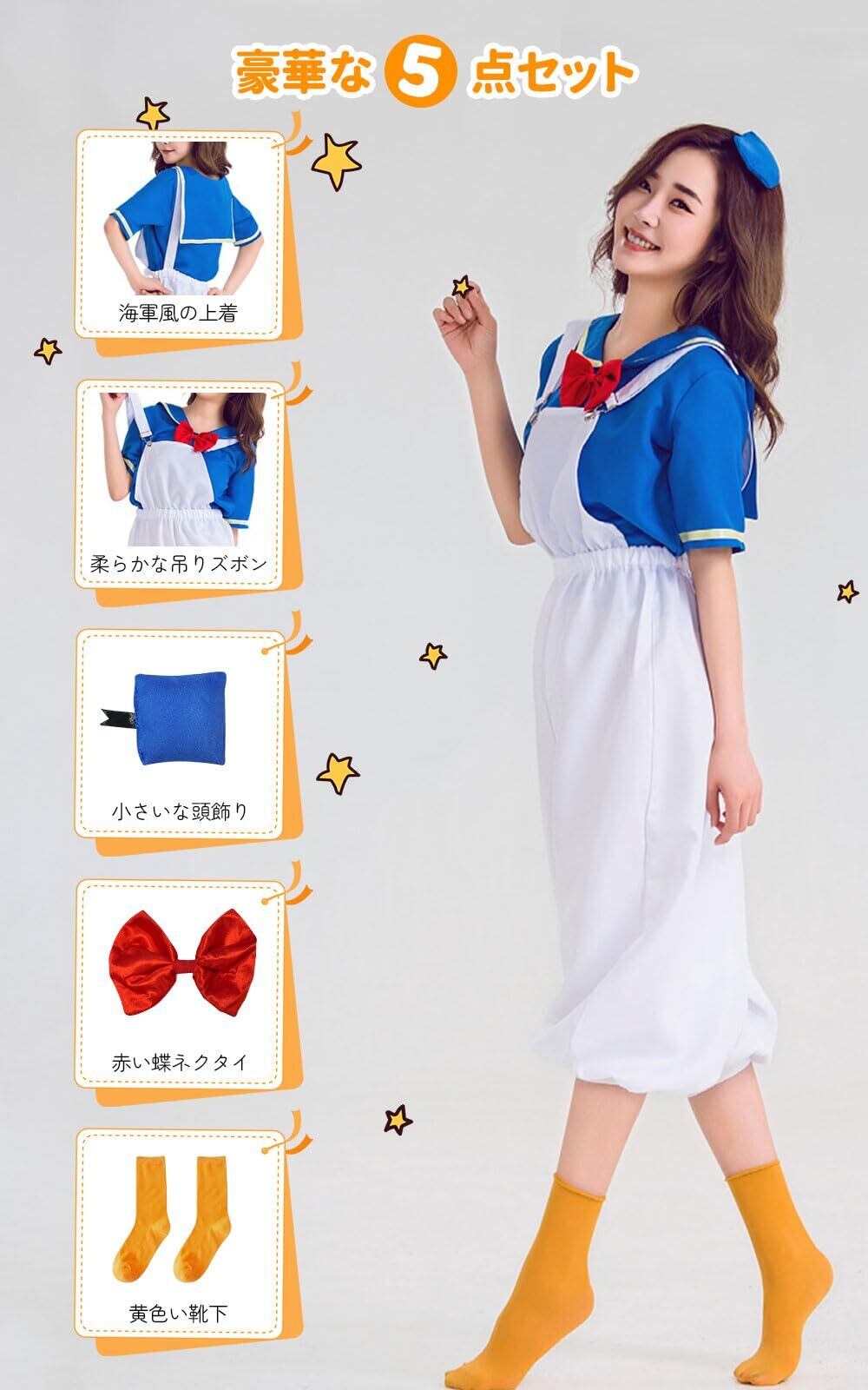 [BingDi] ハロウィン コスプレ アヒル セーラー服 女性用 ダック コスチューム レディース 海軍風 可愛い ドナルド 仮装 大人(女性Lサイズ)