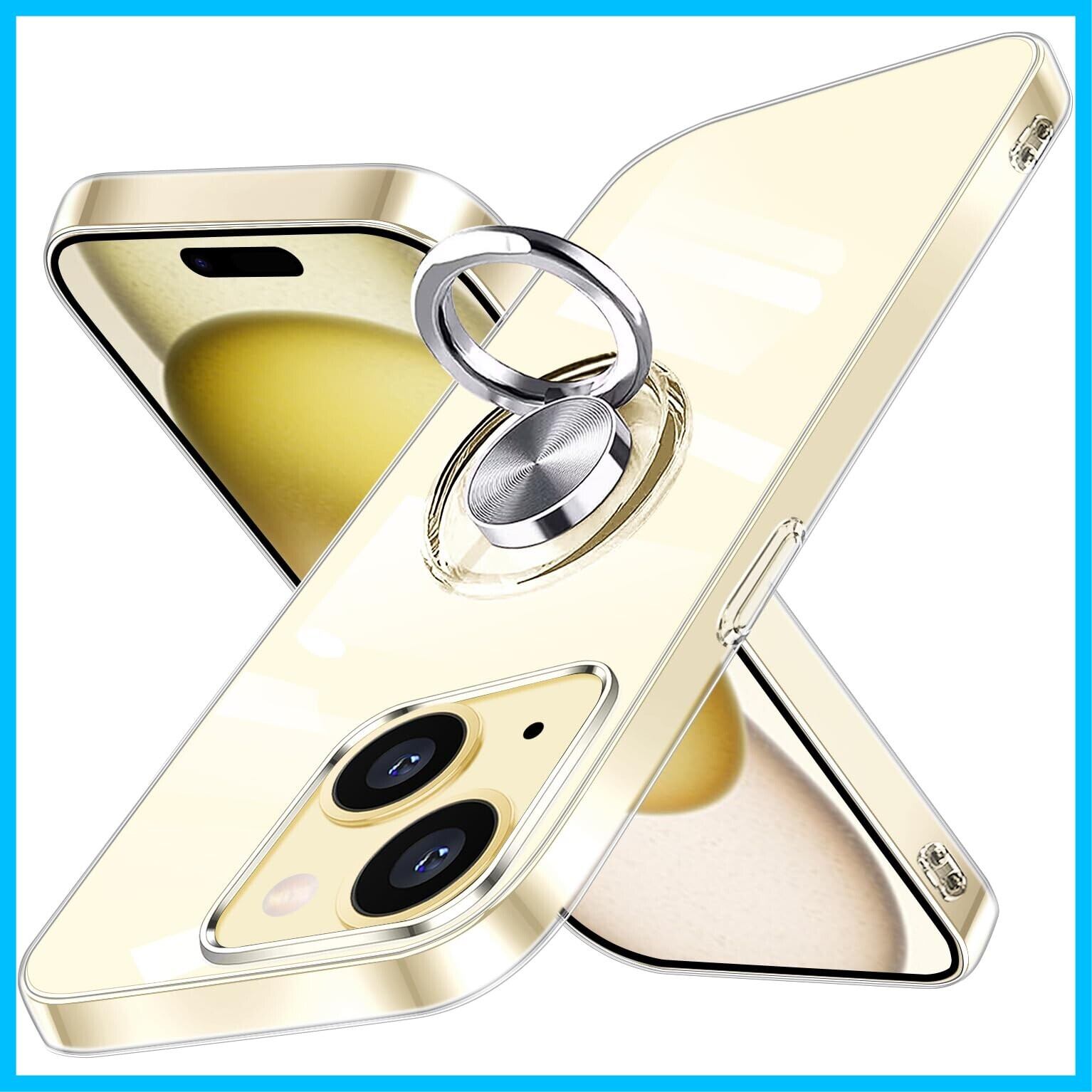 iPhone 15 用 ケース リング付き クリア カバー 耐衝撃 全面保護 軽量 薄型 イフォン スマホケース スタンド機能 車載ホルダー対応 擦り傷防止 滑り止め 落下防止 ストラップホール付き TPU 全透明