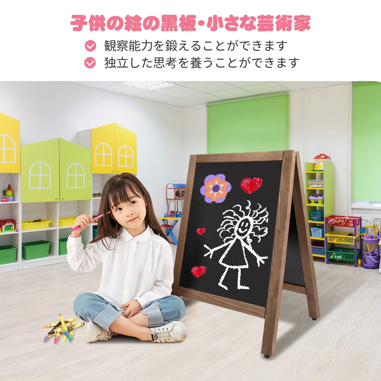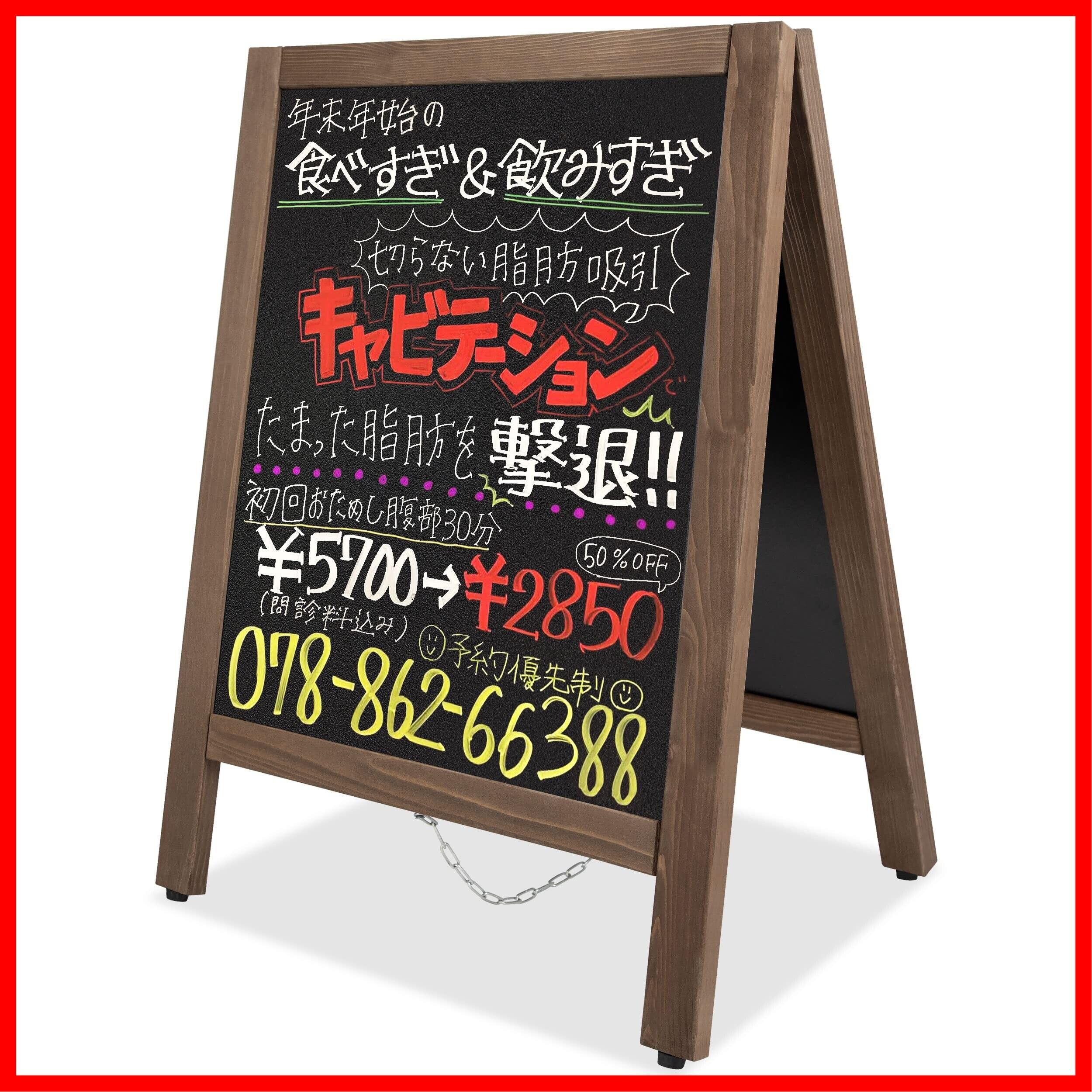 VAIIGO A型 看板 両面ブラックボード a型 立て看板 スタンド ボード メニュースタンド 100%木製 黒板 お店の看板 折りたたみ式 案内板 ウッドボード 転倒防止ボード 屋内外対応 Aタイプ ウェルカムボード 店舗用看板 (木製,両面,ブラウン)