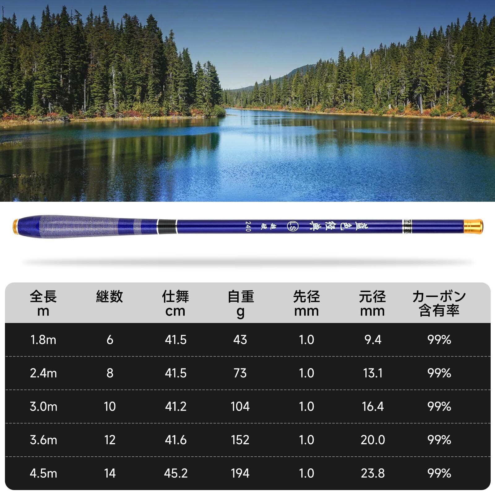 サンライク(SANLIKE) 渓流竿 コンパクト延べ竿 ロッド 釣り竿 カーボンロッド 超軽量 延べ竿 堤防 湖畔 渓流 初心者 1.8M/2.4M/3.0m/3.6M/4.5m (180.00)