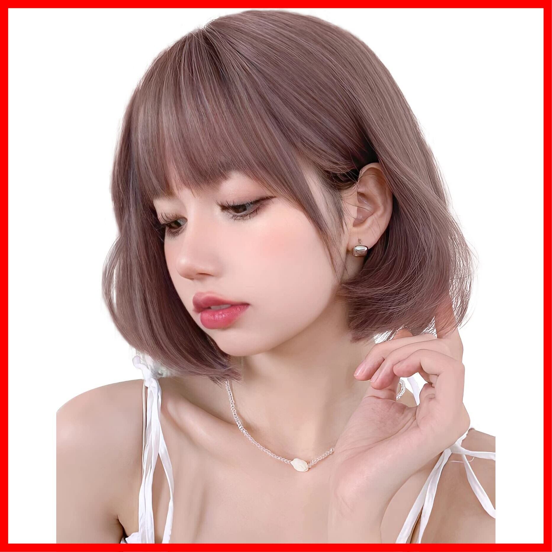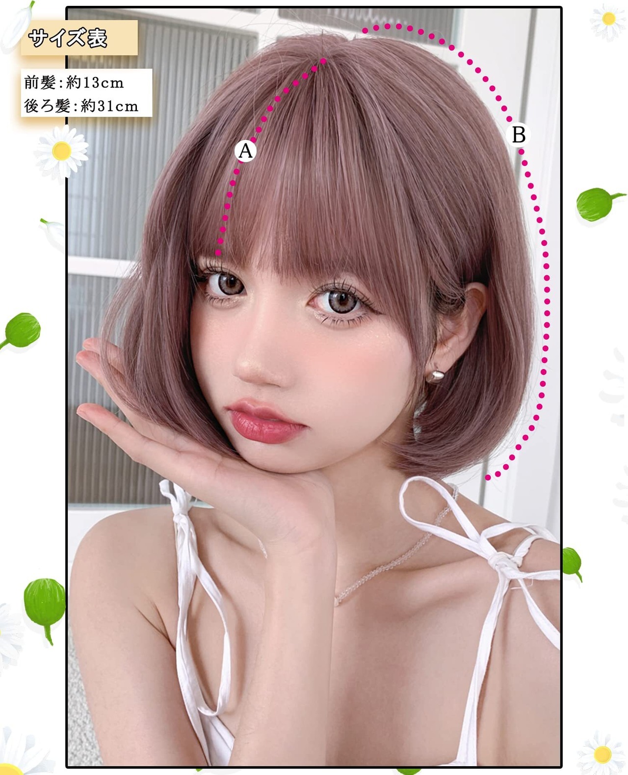 [Limakara] 人工毛 ウィッグ ボブ ショート フルウィッグ かつら レディーズ ストレート 自然 耐熱 小顔効果 wig 女装 原宿 日常 ネット/櫛付き ピンクアッシュ