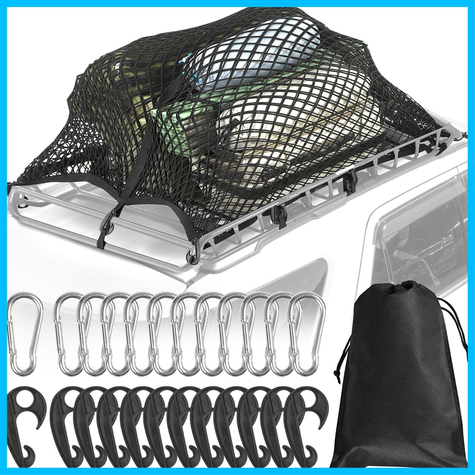 ETLIFE カーゴネット 車 90×120cm 2重【キャンプインストラクター監修 簡単設置で時短!絡まない!】ABS製フック×12 ステンレス製カラビナ×12 収納ポーチ付属 ルーフラック ネット ルーフネット ラゲッジネット ルーフキャリア 荷崩れ防止